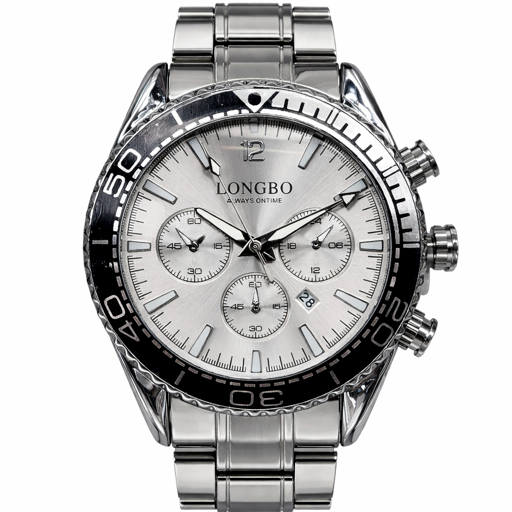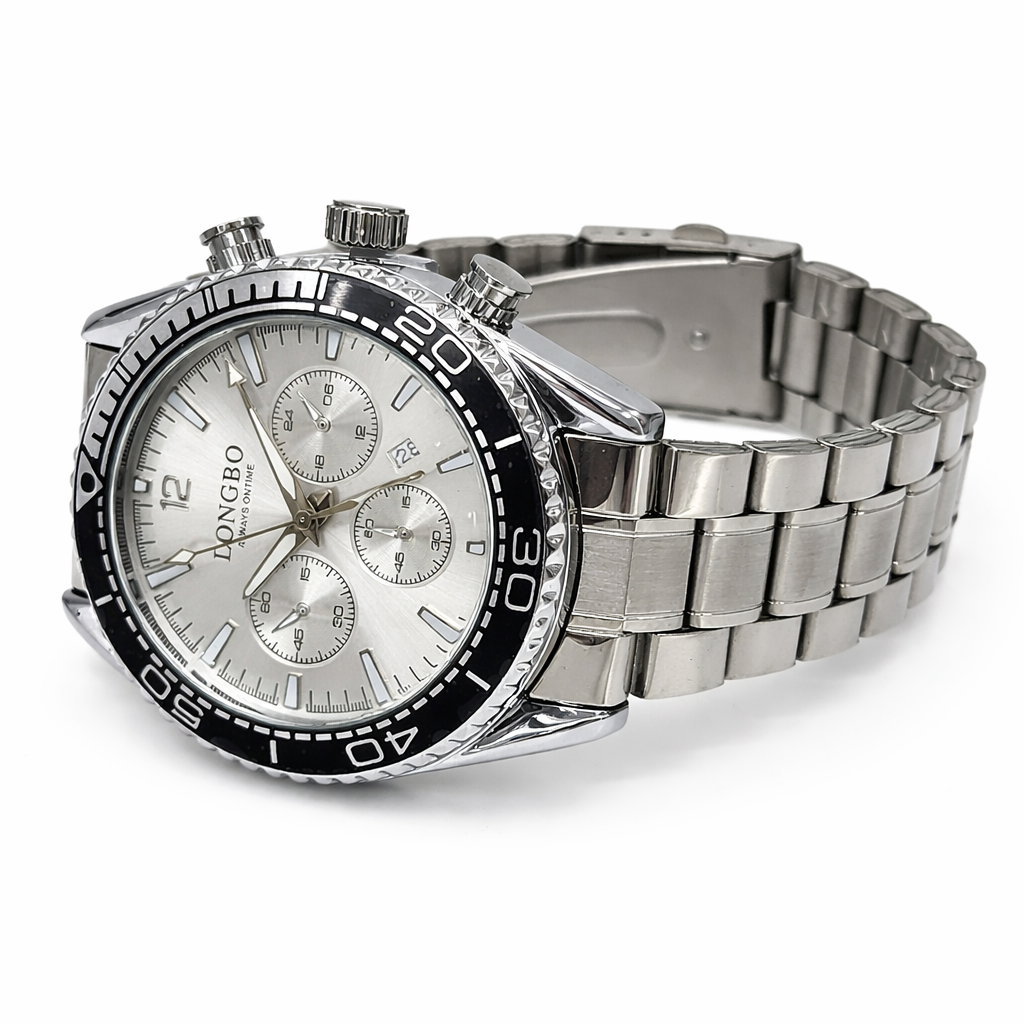 Gents Longbo Chronograph Watch Silver Dial Stainless Steel 44mm – Model 83096GS