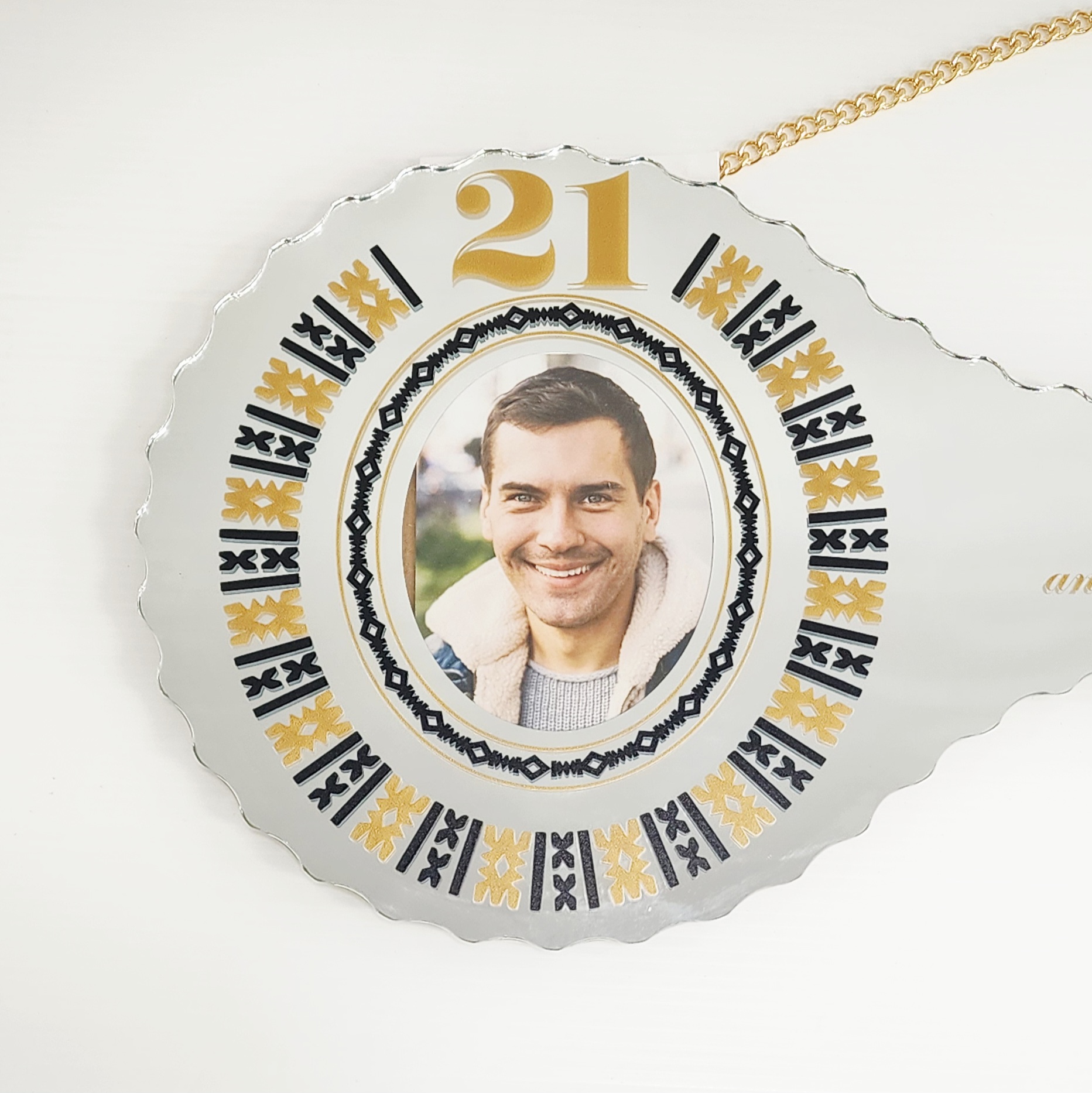 Our Mirrored 21st keys come with a 13mm MDF backing so your key can be signed by guests and loved ones. They also feature scalloped edges and a gold look chain to hang from. Dimensions: 524 x 205mm.