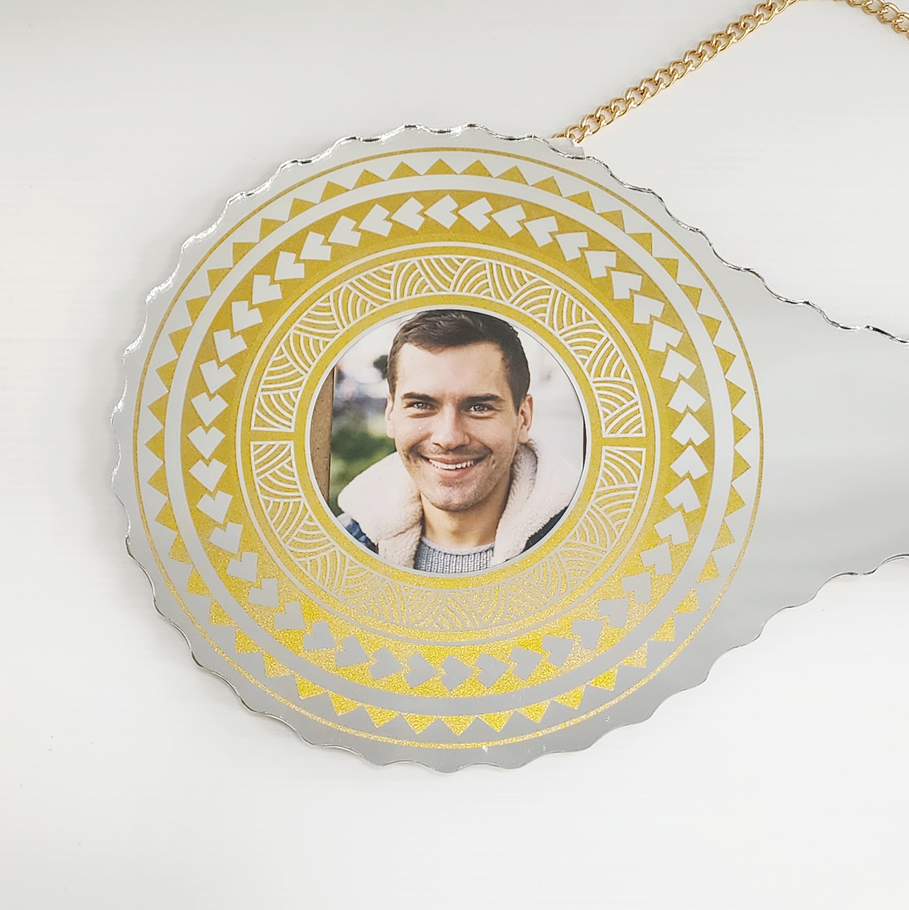 Golden Print Design with Island Tattoo Patterns Mirrored/Glass Photo 21st Birthday Key – SJ2505