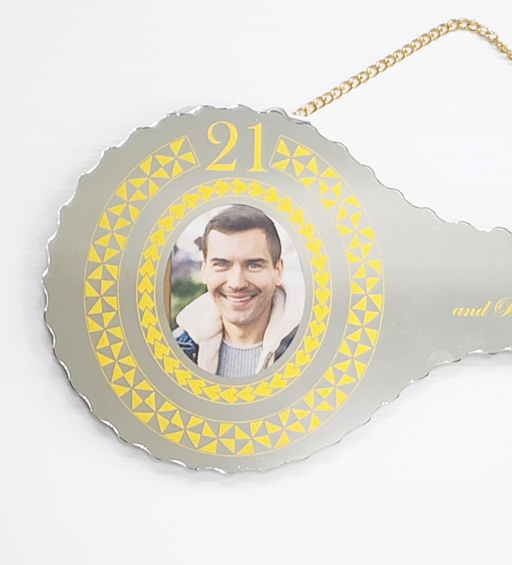 Golden Print Design with Tongan Sila & Tattoo Patterns Mirrored/Glass Photo 21st Birthday Key – SJ2502