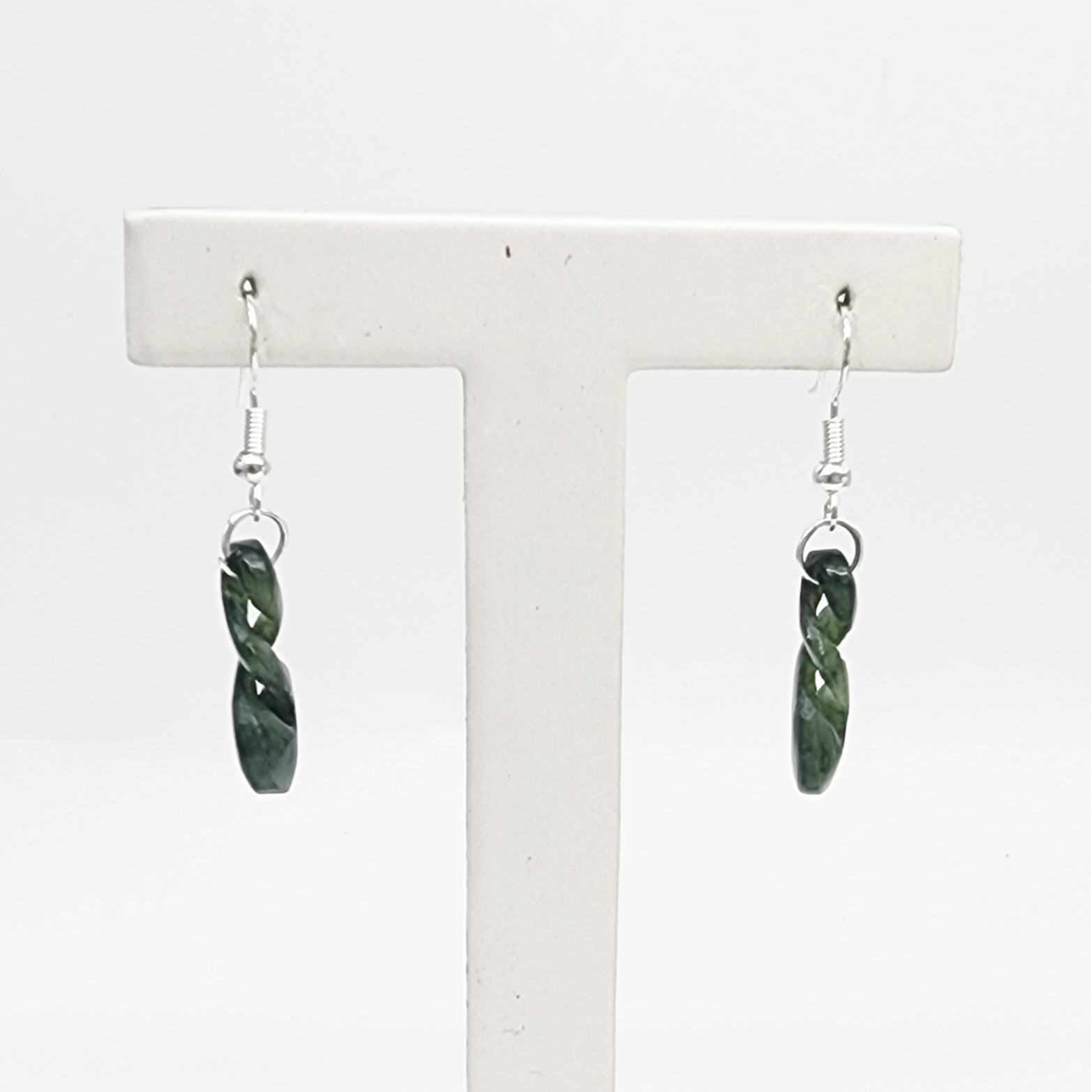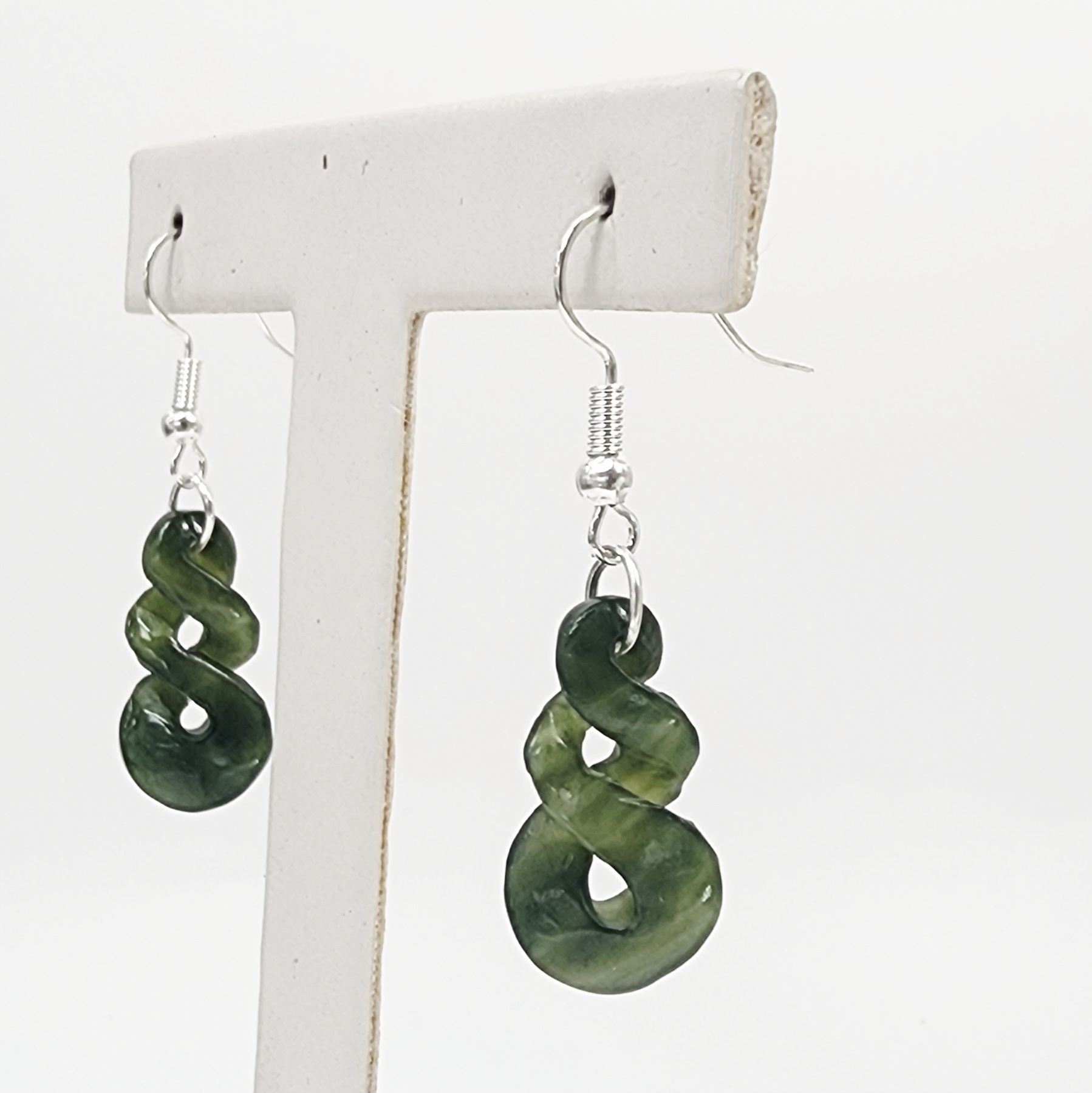 Greenstone Double Twist Hook Earrings – 34mm x 13mm with Sterling Silver Hooks