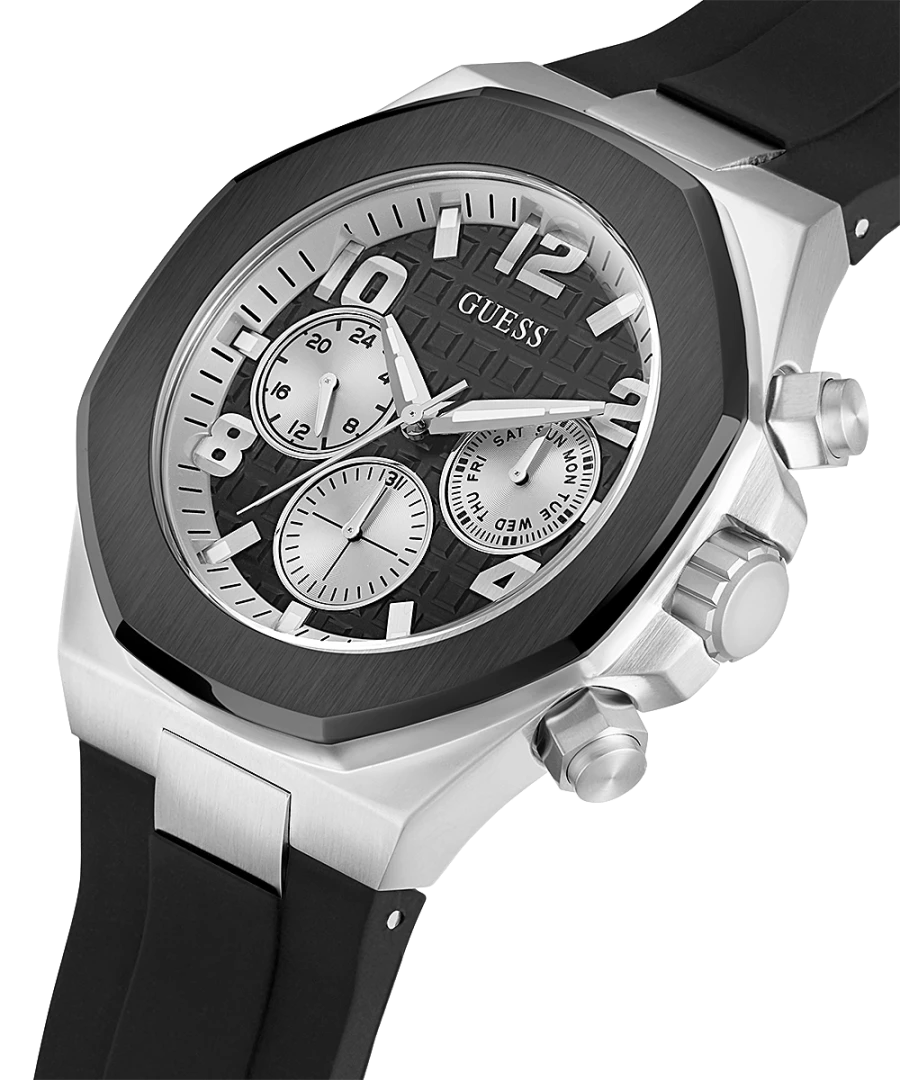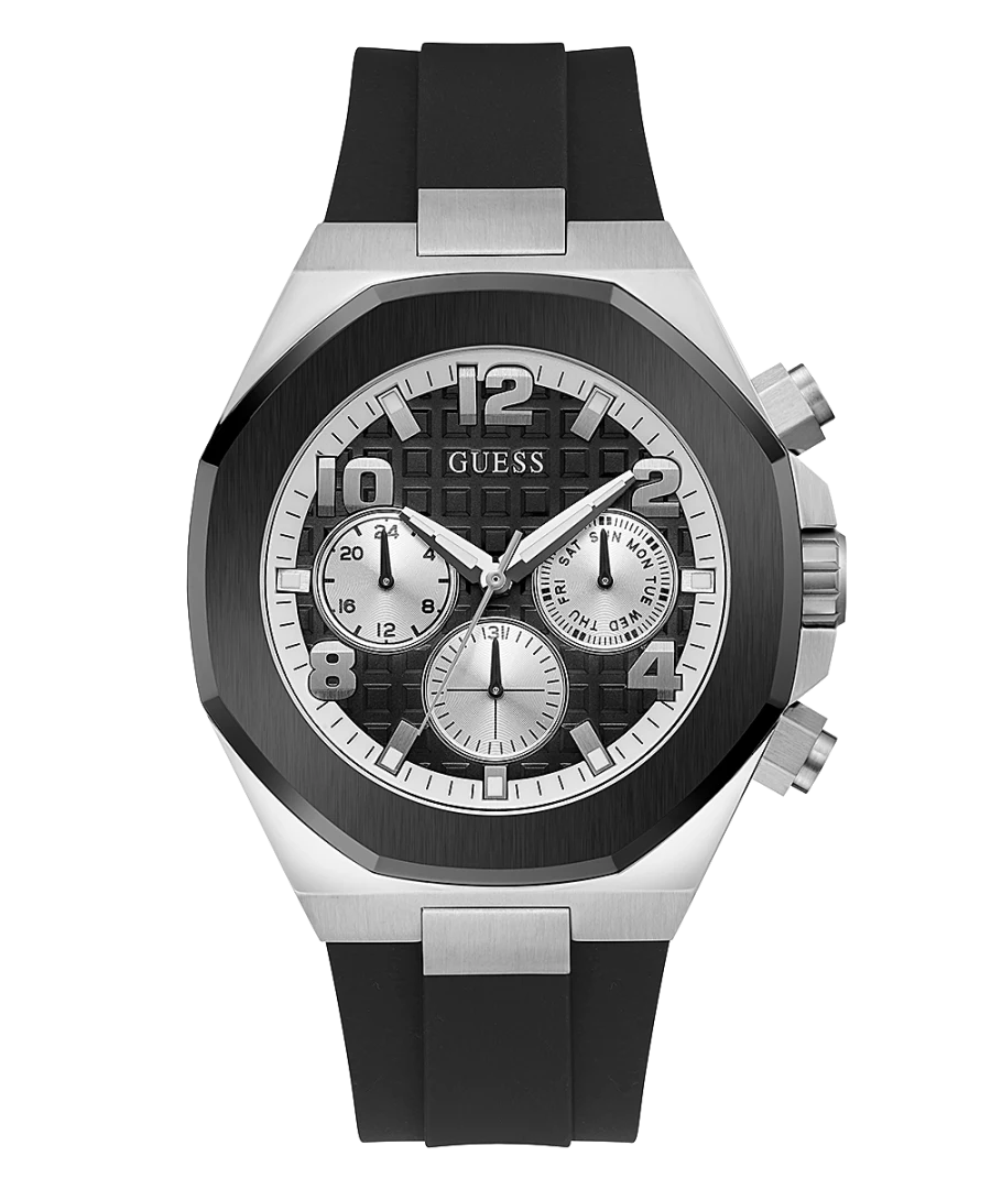 Guess 2-Tone Case Black Silicone Strap Watch – GW0583G1