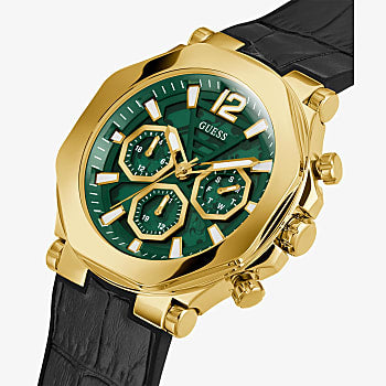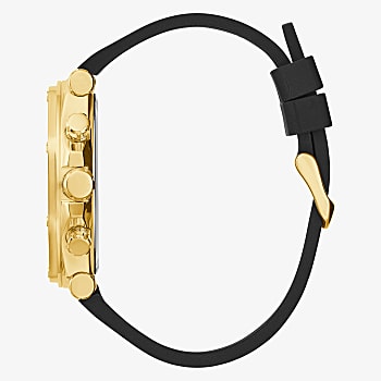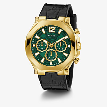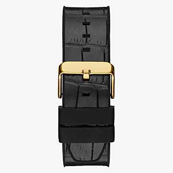 GUESS GOLD TONE CASE BLACK GENUINE CROCO LEATHER/SILICONE STRAP MANS WATCH (GW0492G3)