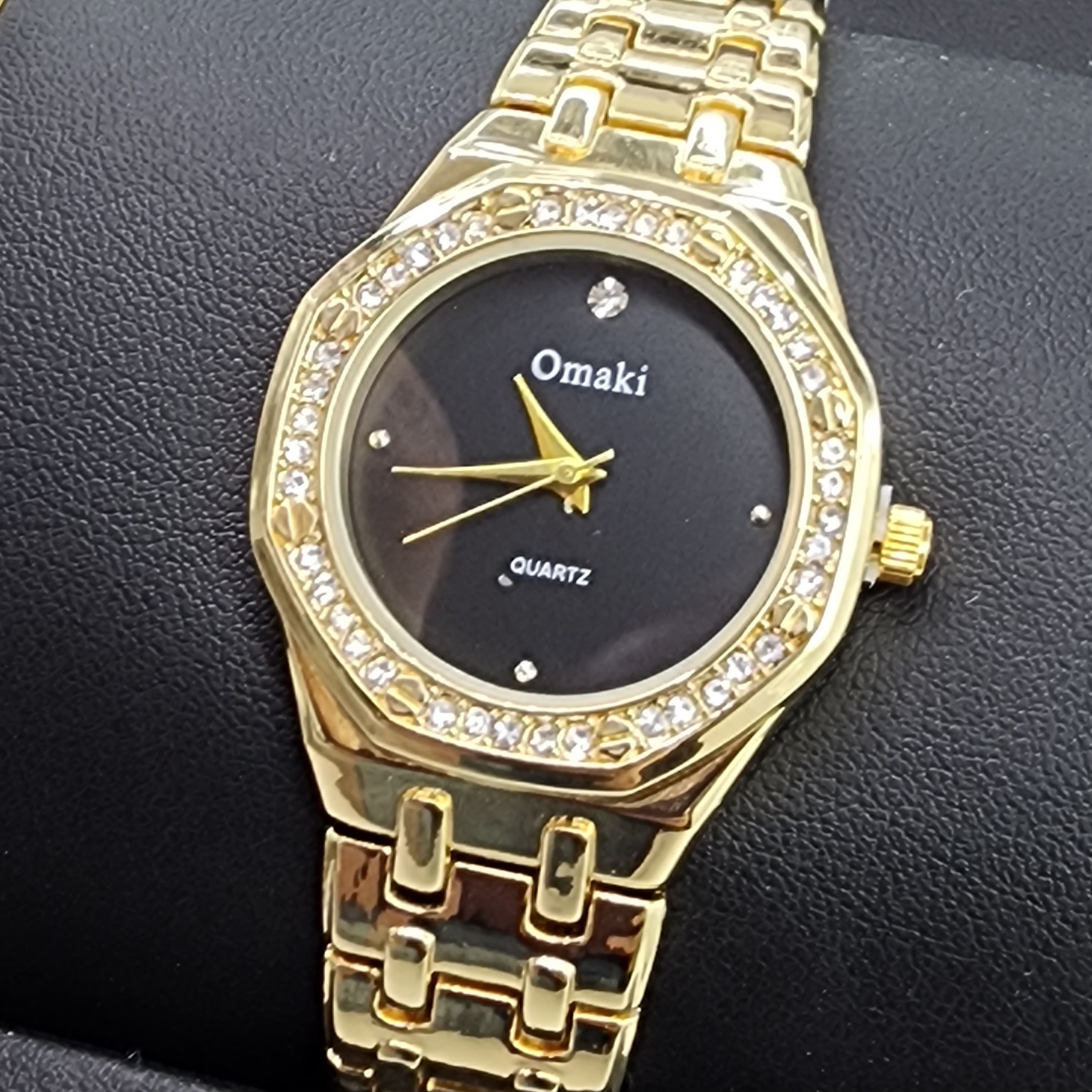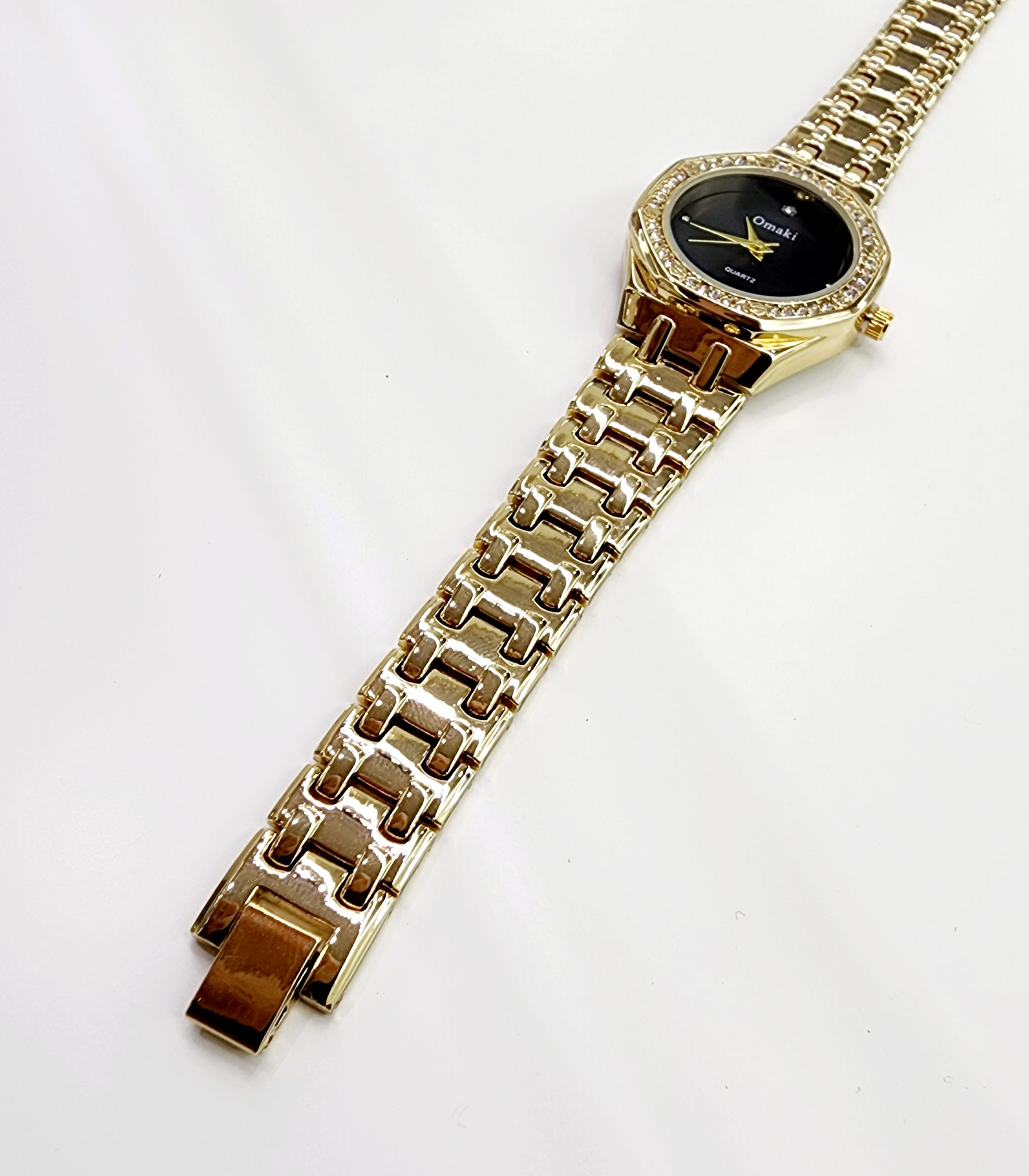 OMAKI Womens Gold Tone Dress Watch with Black Face