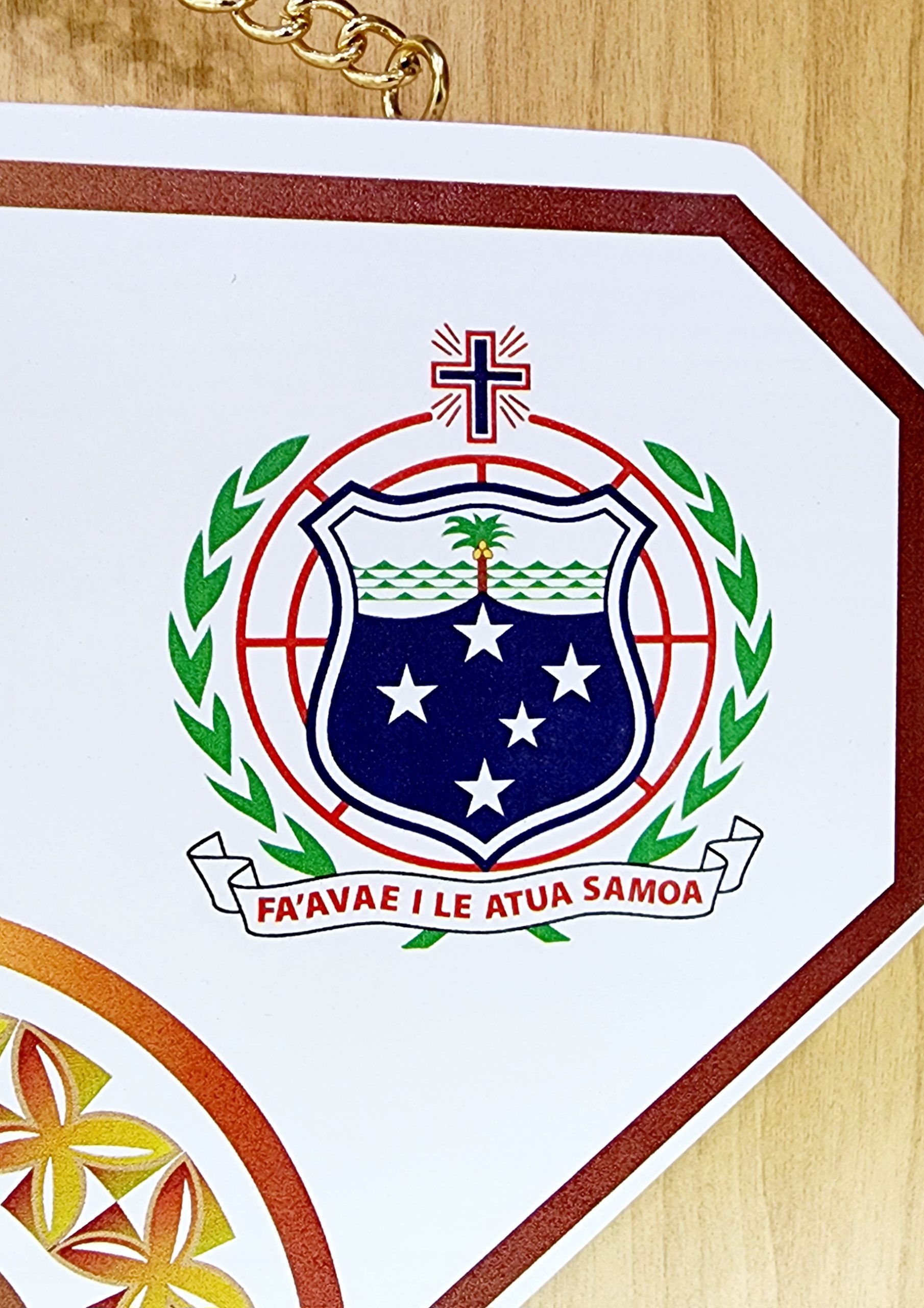 Island Design Golden Red Theme Colour UV Printed Birthday Key with Coloured Samoan Sila