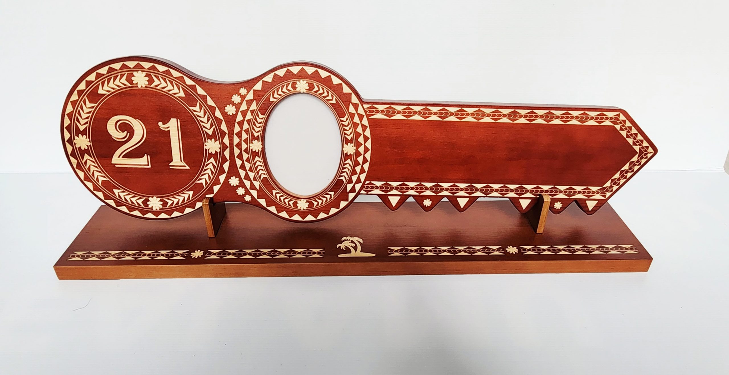 A timeless keepsake that blends traditional craftsmanship with modern laser precision, ideal for celebrating a special 21st birthday island-style.