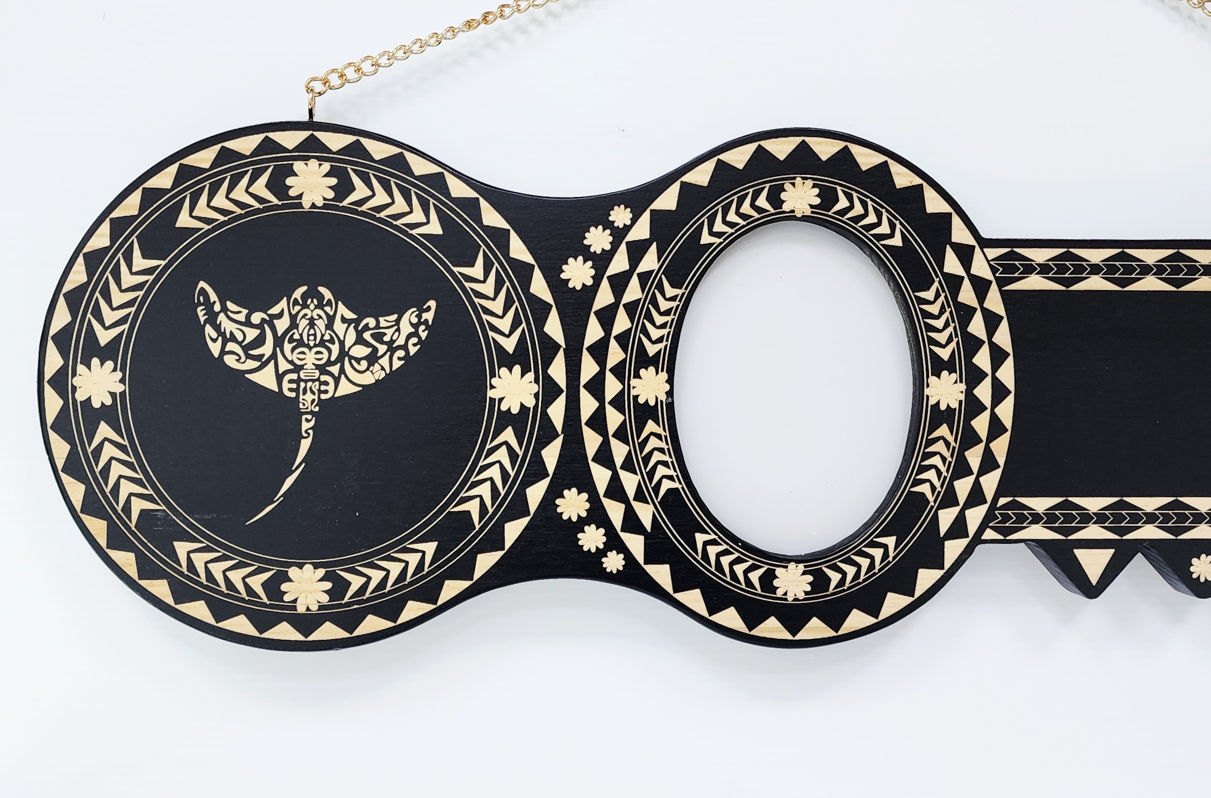 Stunning island patterns engraved along the left edge, featuring a detailed stingray motif at the centre.