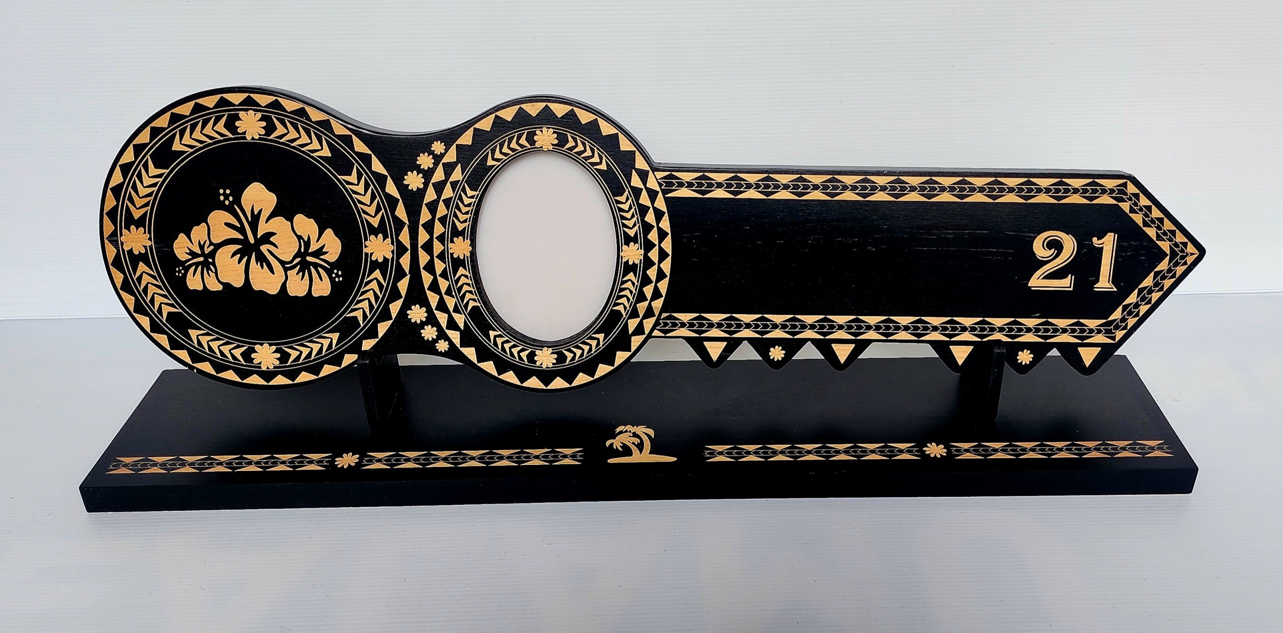 Island Design Wooden Birthday Key with Three Hibiscus Flowers & “21” Laser Engraved – SJ2510BLK