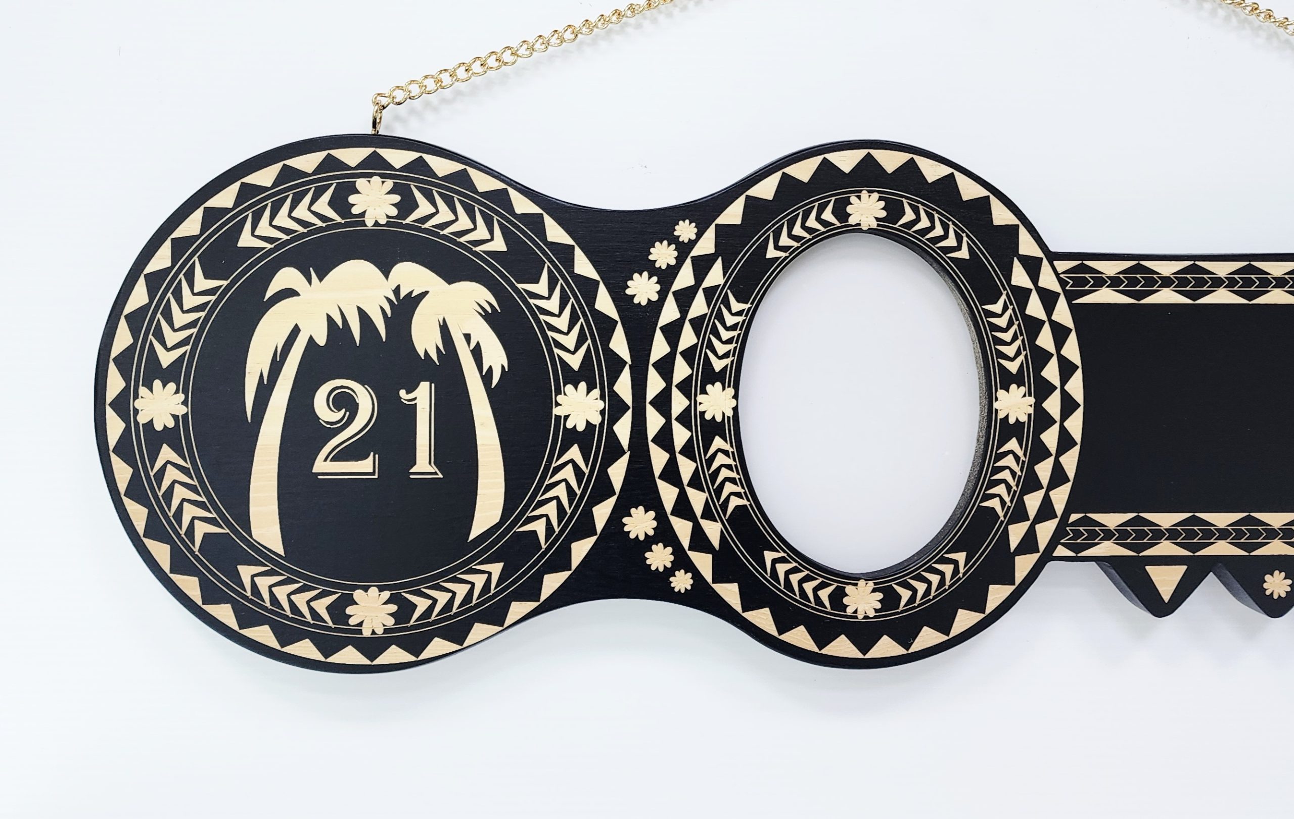 Island Design Wooden Birthday Key with “Two Palm Trees” & “21” Laser Engraved – SJ2513BLK
