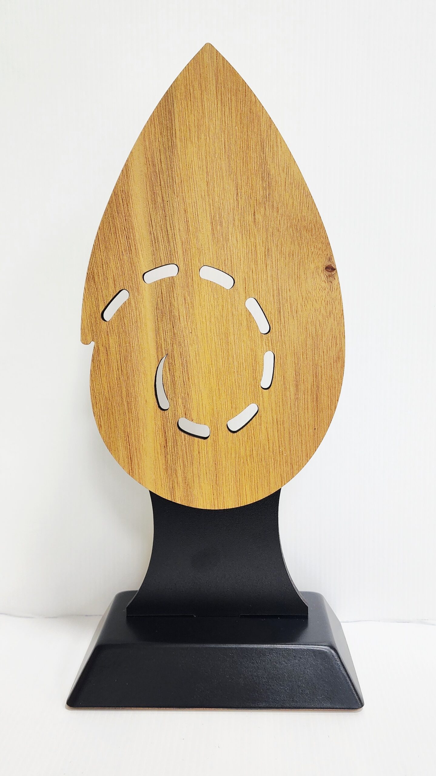 Standing approximately 360mm high, this award is meticulously hand-assembled using premium New Zealand Rimu veneered MDF, complemented by layers of plantation-grown Gaboon. The natural warmth of the timber is enhanced through precision laser-cut detailing, creating depth, contrast, and refined structure throughout the design.