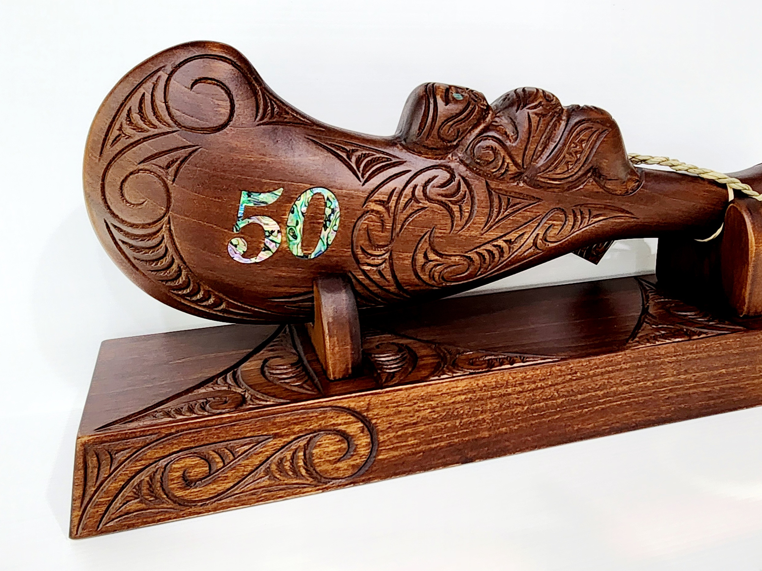 This large carved Maori Wahaika Club on stand makes a great gift for a 50th birthday.