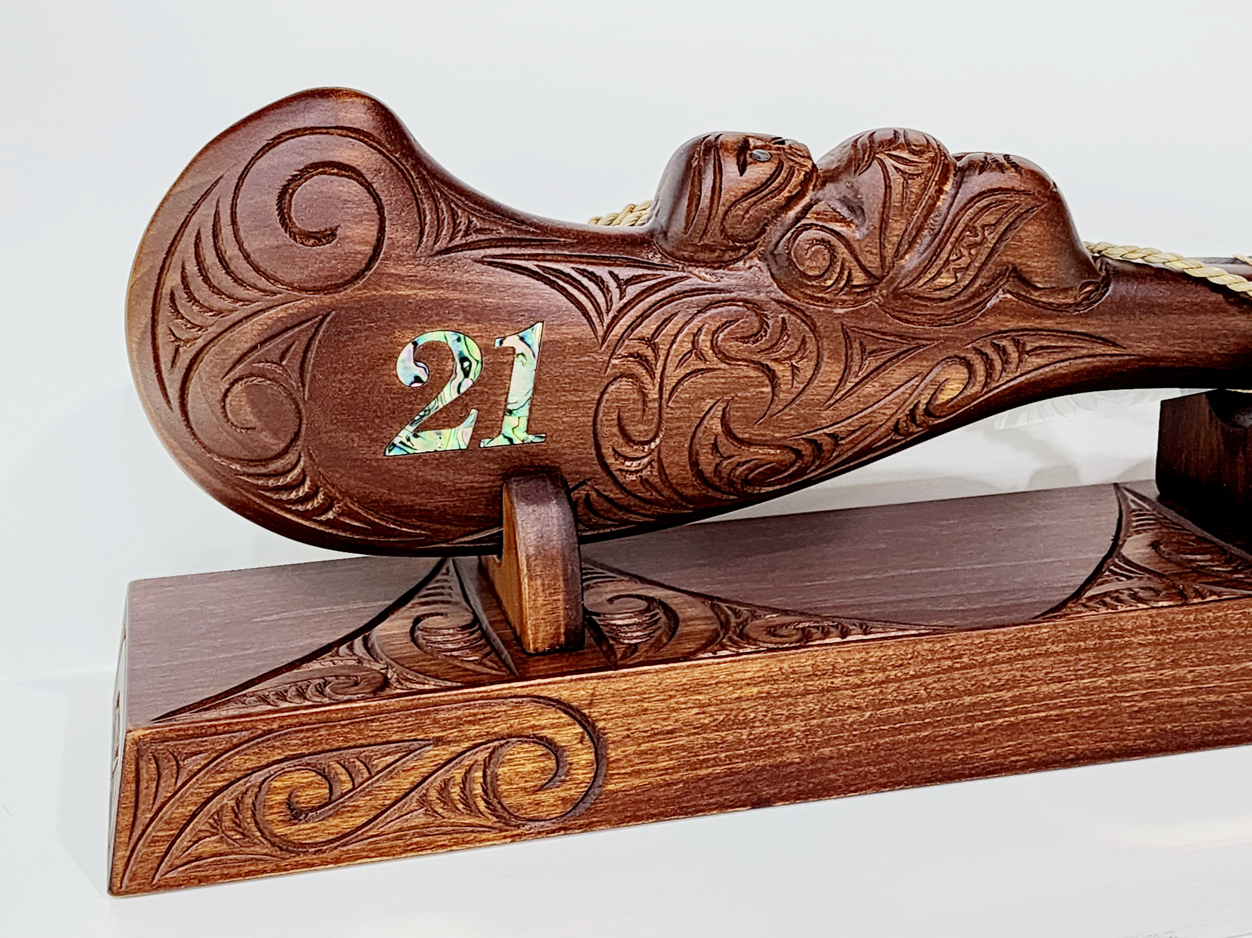 This large carved Maori Wahaika Club on stand makes a great gift for a 21st birthday.