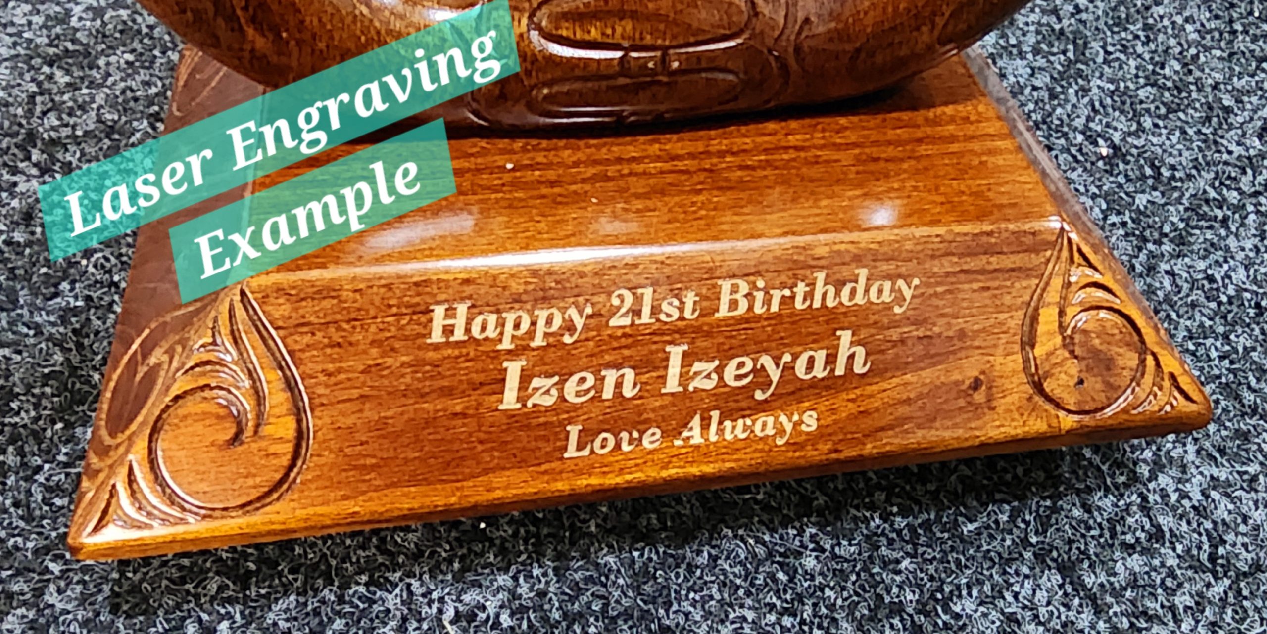 Engraving on the front of the base stand can be done either with a Golden Plaque or Laser Engraved.