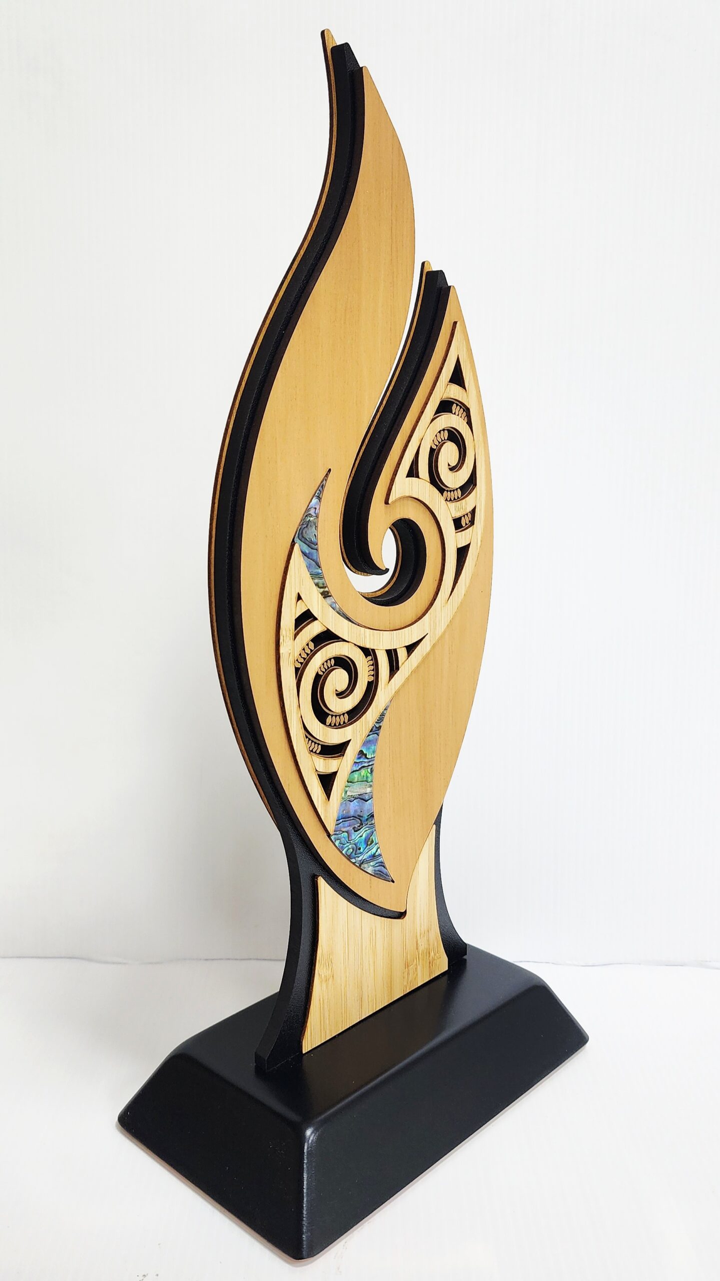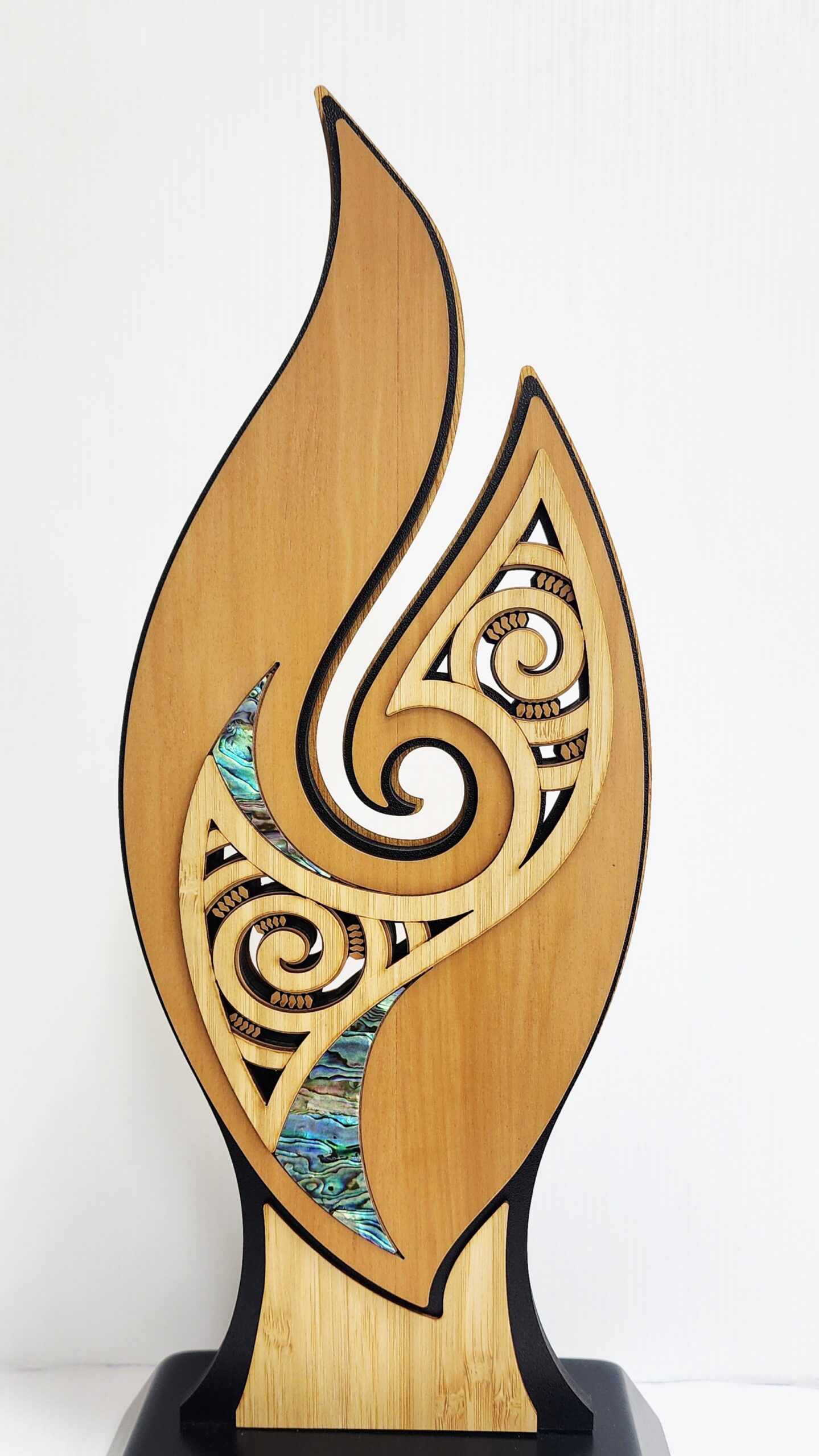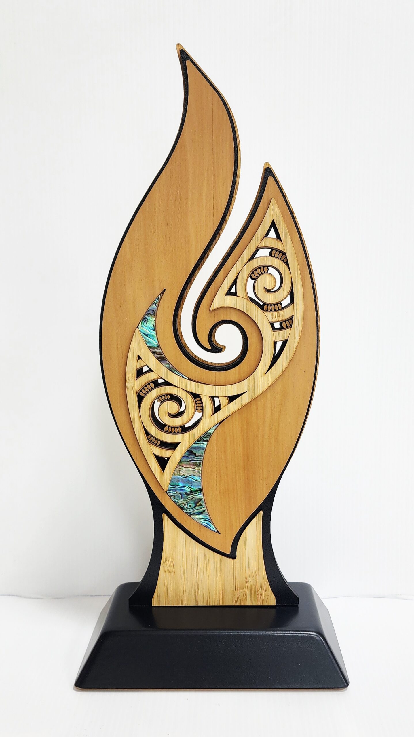Large Flame Award – NZ Rimu & Paua Inlay Contemporary Artwork (370mm) – ALFL