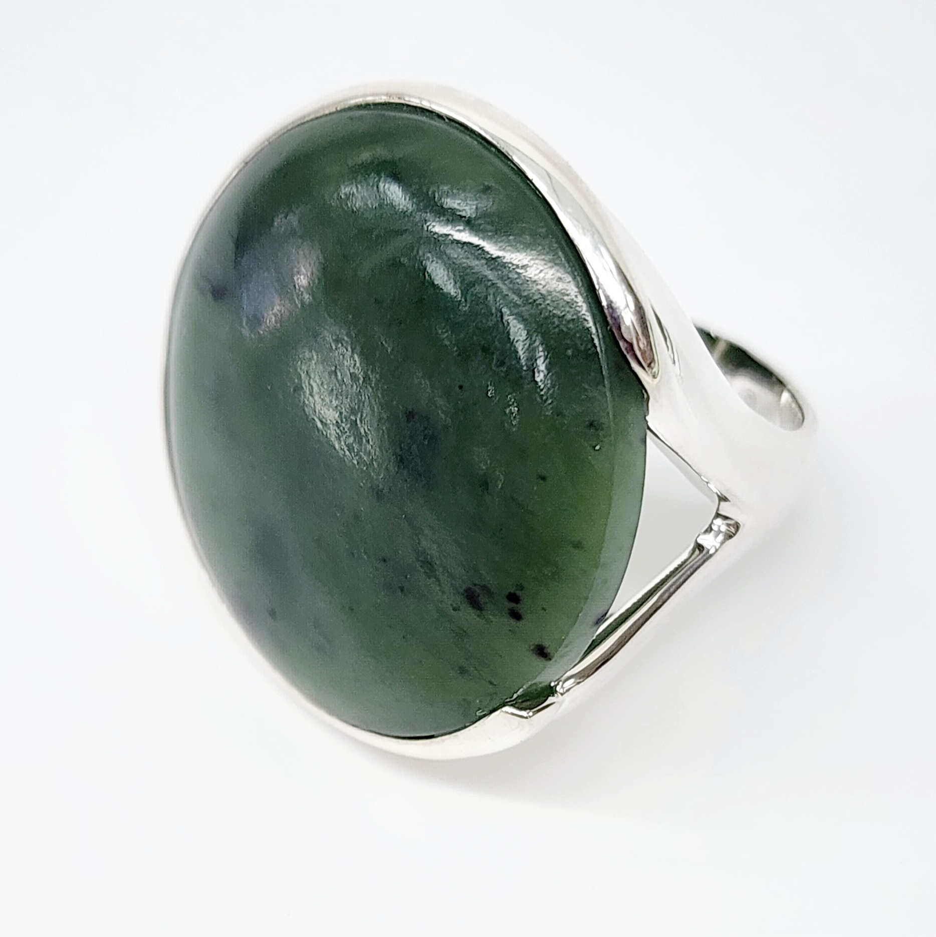Large Sterling Silver NZ Greenstone Round Dome Ring – SSGSTRV