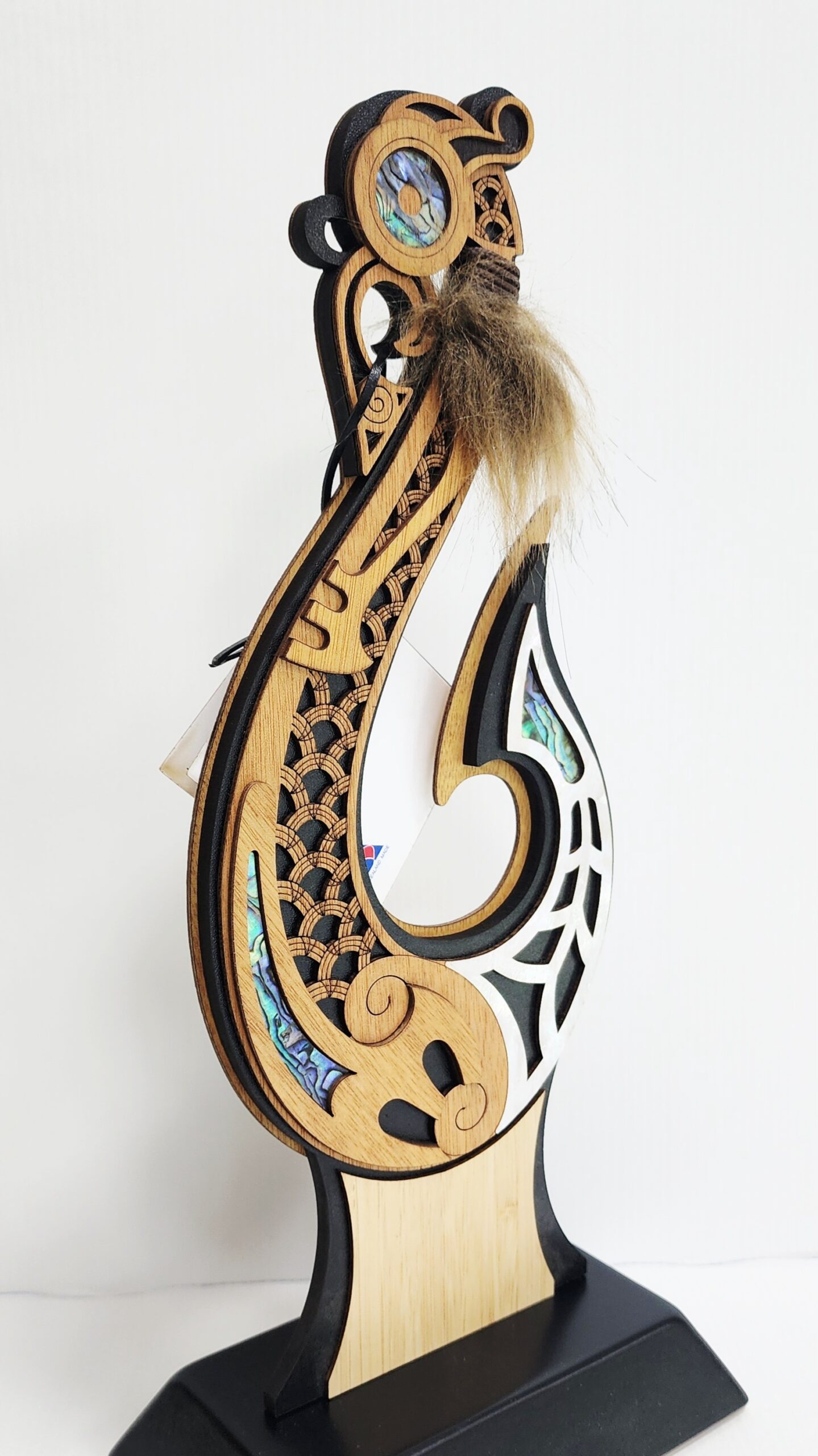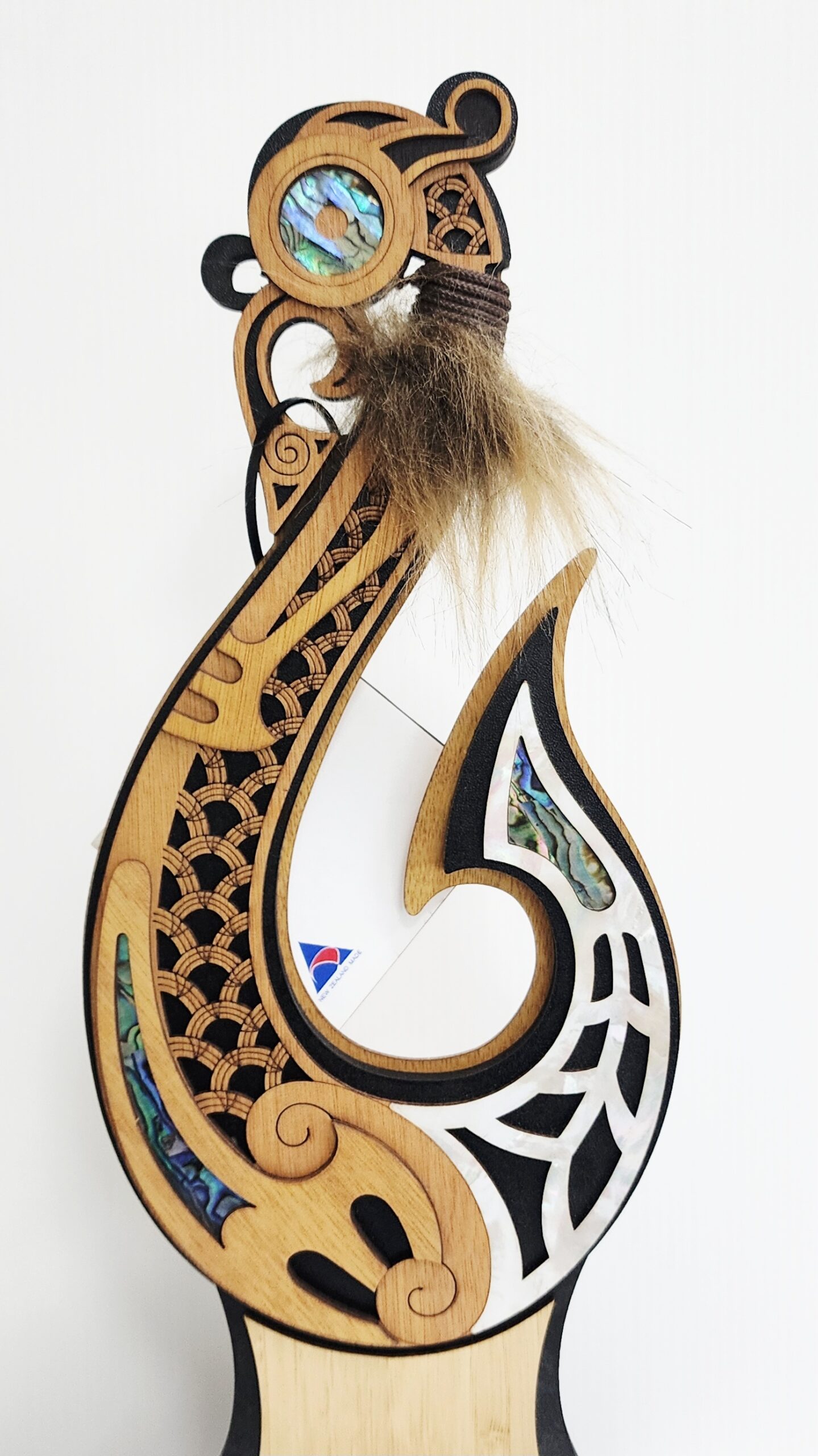 Large Te Matau a Māui Hook Award – NZ Paua Inlay Cultural Artwork (370mm) – ALHK