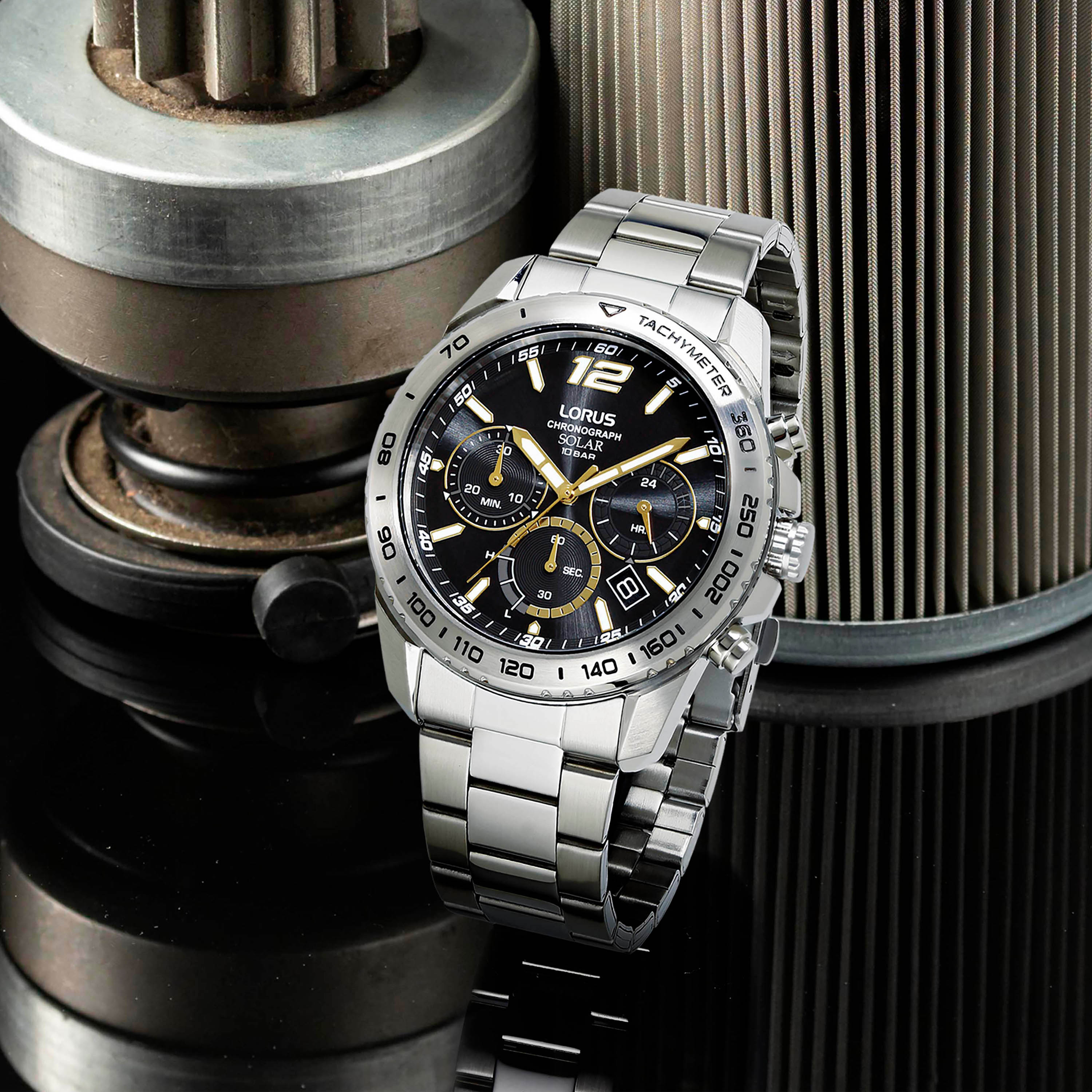 Lorus Men’s Solar Chronograph Watch – Black Dial, Date Display, 100m Water Resistant – RZ509AX9