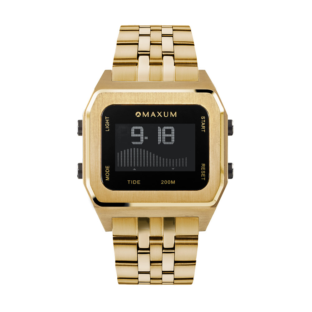 Maxum Raglan Digital Sqaure Dial Tide Watch Gold Tone Stainless Steel Case & Bracelet 200m WR – MW23104G03