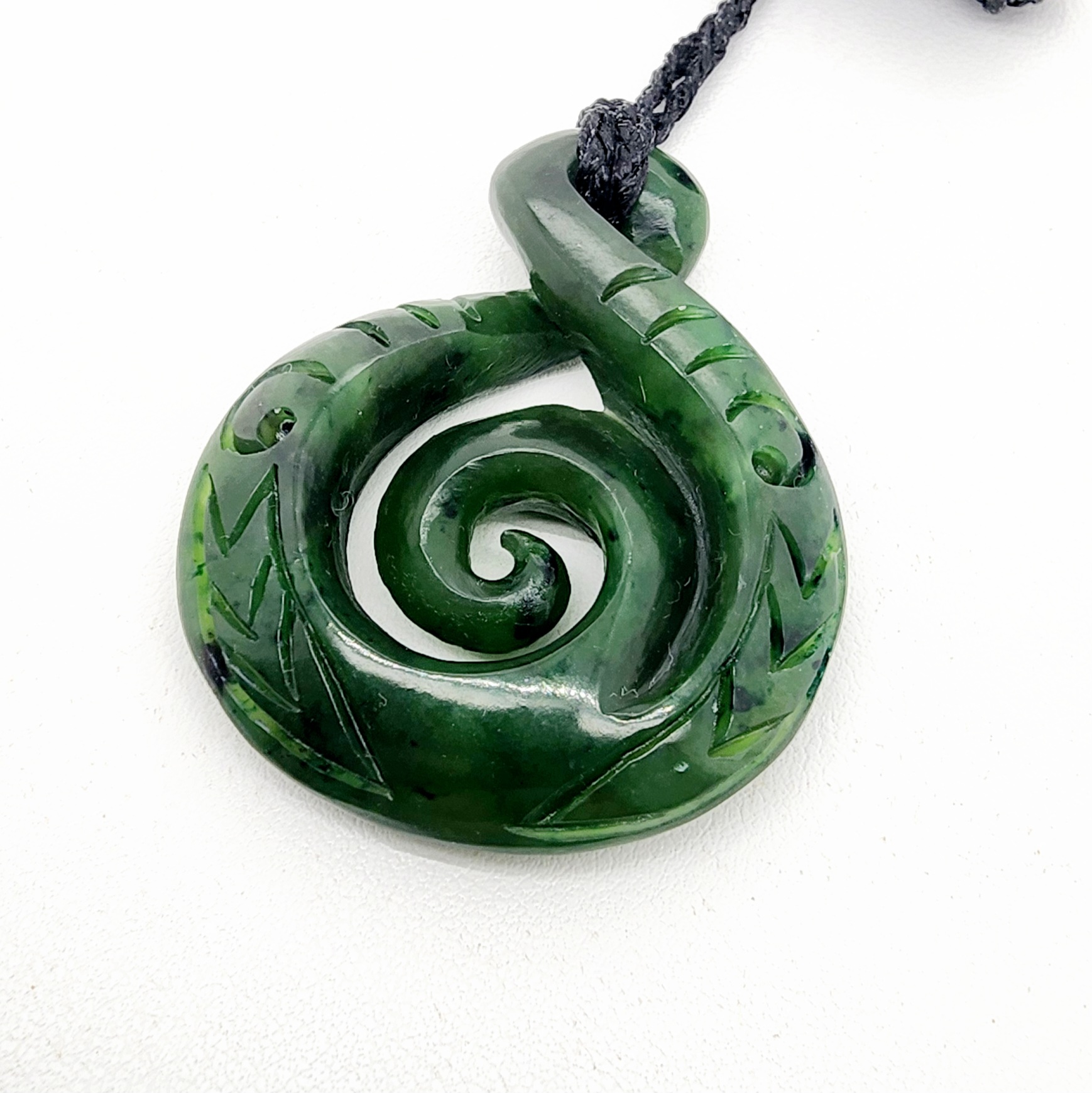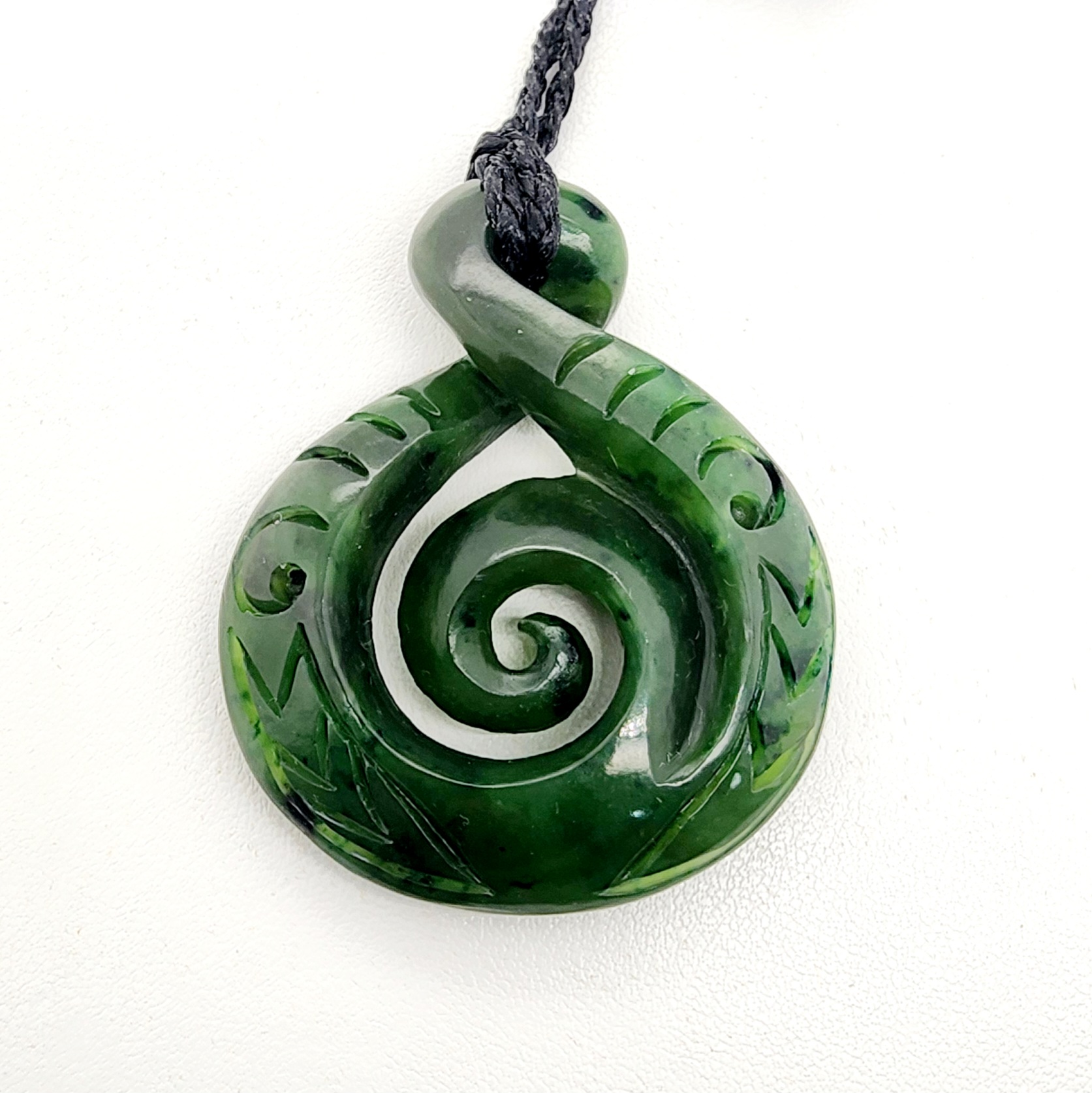 New Zealand Engraved Single Twist Greenstone With Koru Necklace – HPN924.70