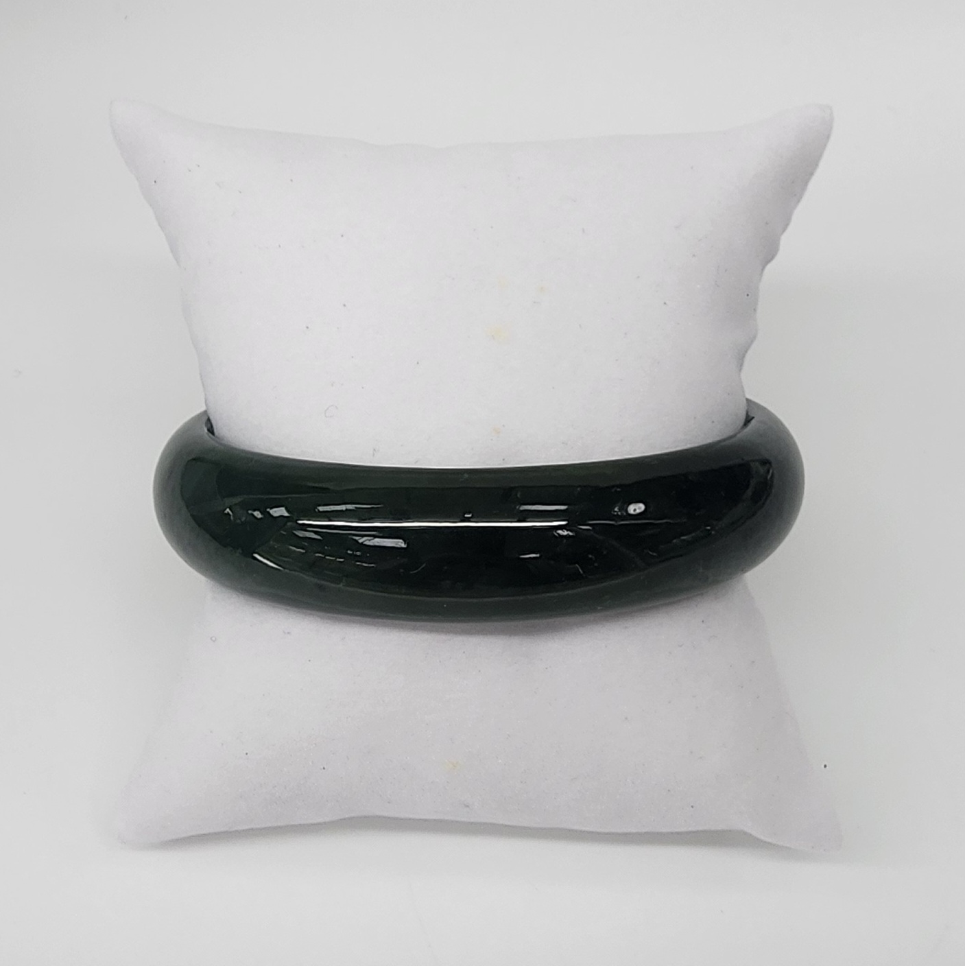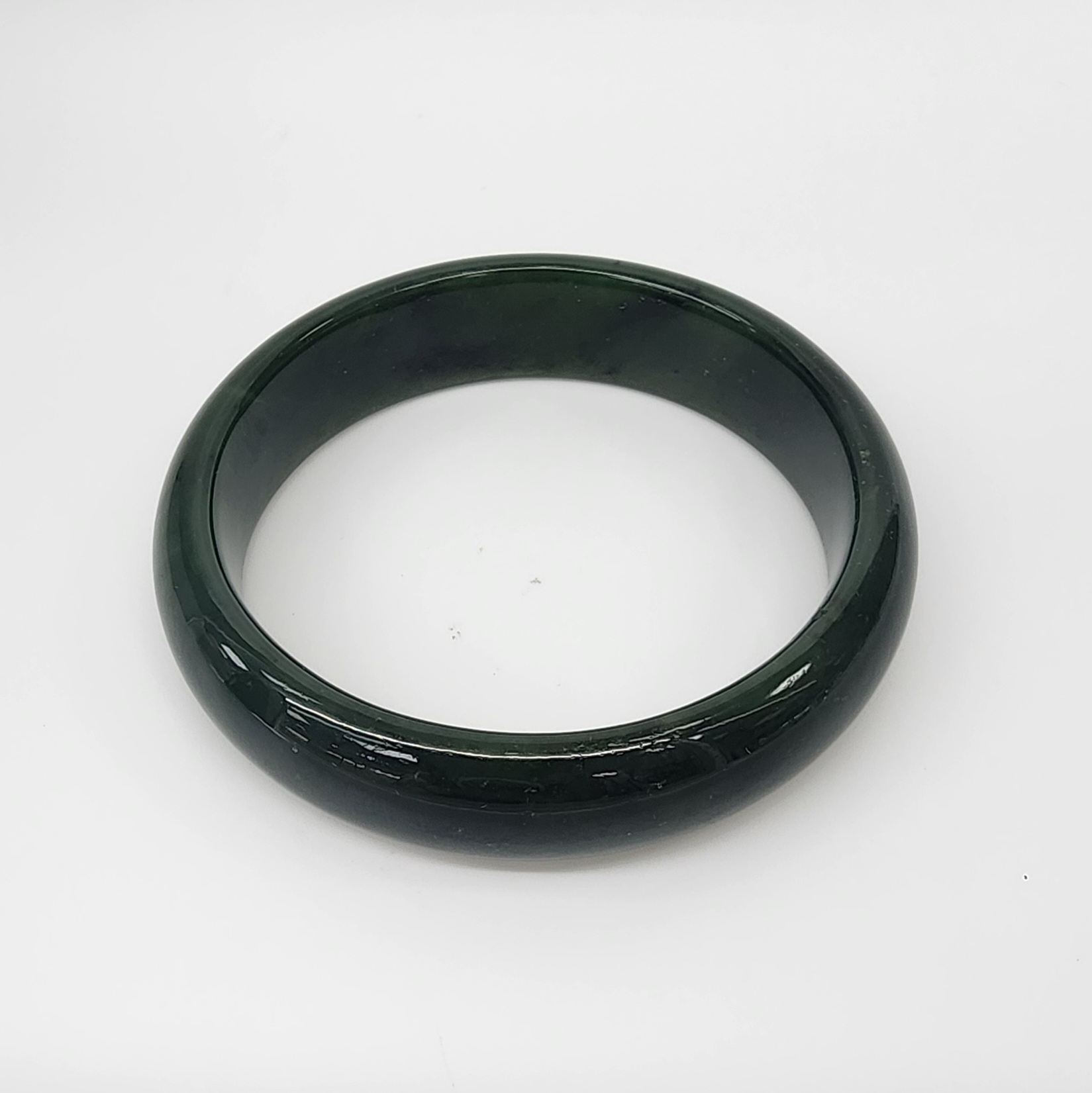 New Zealand Greenstone (Pounamu) Bangle – 59mm – 15mm Wide – Polished Half Round – BANWDOZ-59