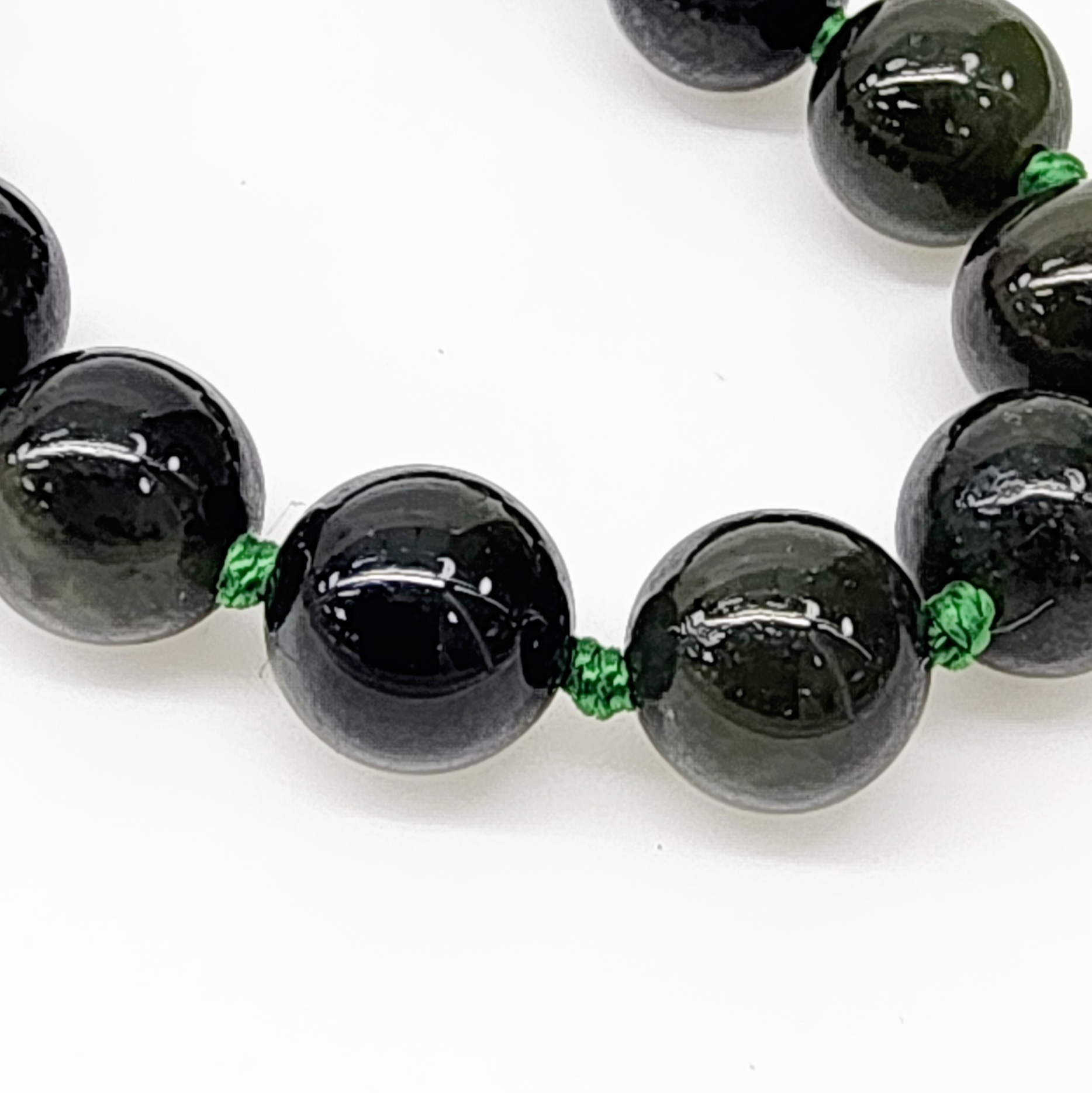 This necklace features 8mm round New Zealand Greenstone beads, each individually knotted for added durability and elegance. It measures approximately 76cm in length and is secured with a sturdy stainless steel parrot clasp, ensuring both style and functionality.