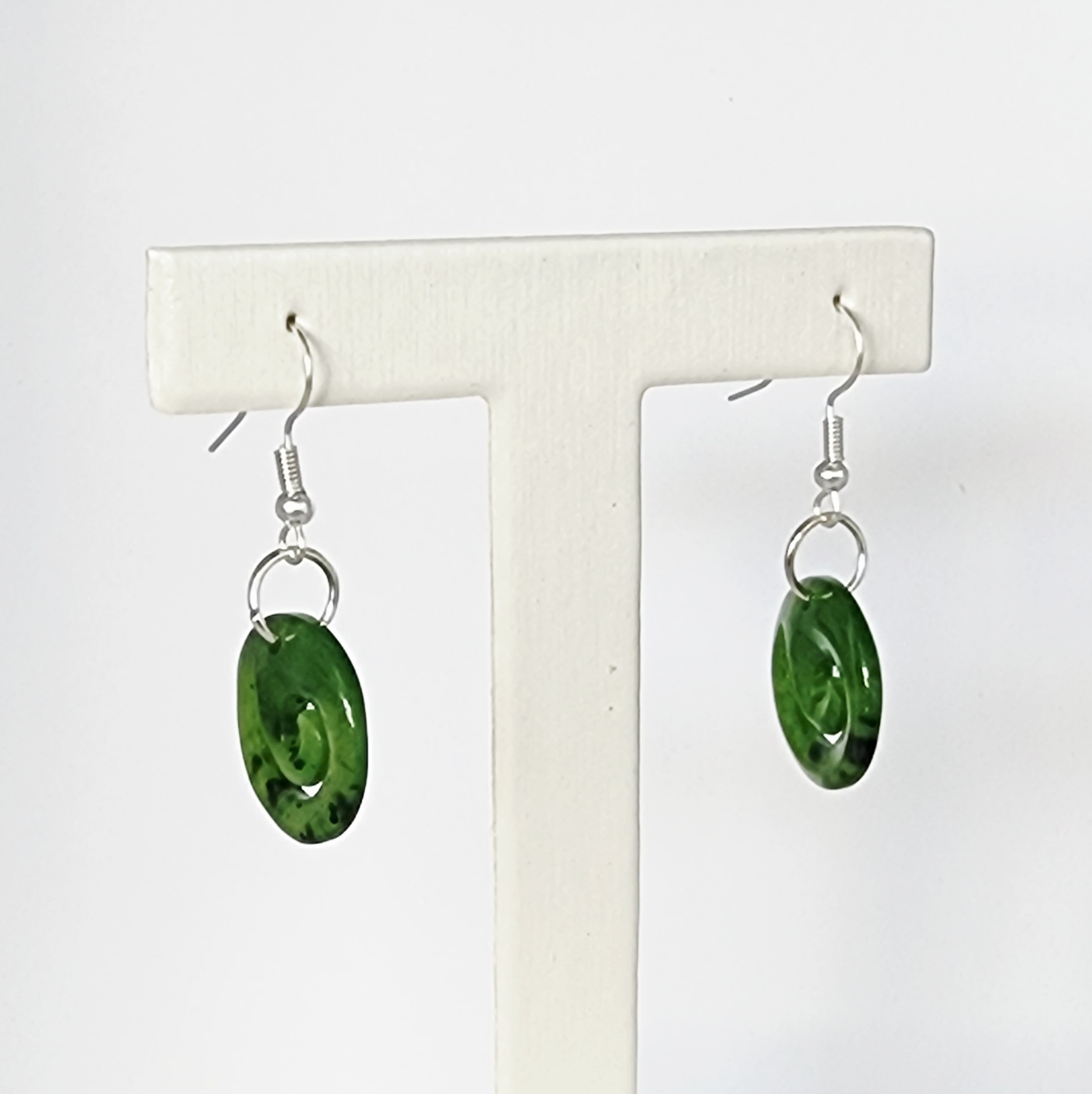 NZ Greenstone Closed Koru Earrings with Sterling Silver Hooks – JJE18.30