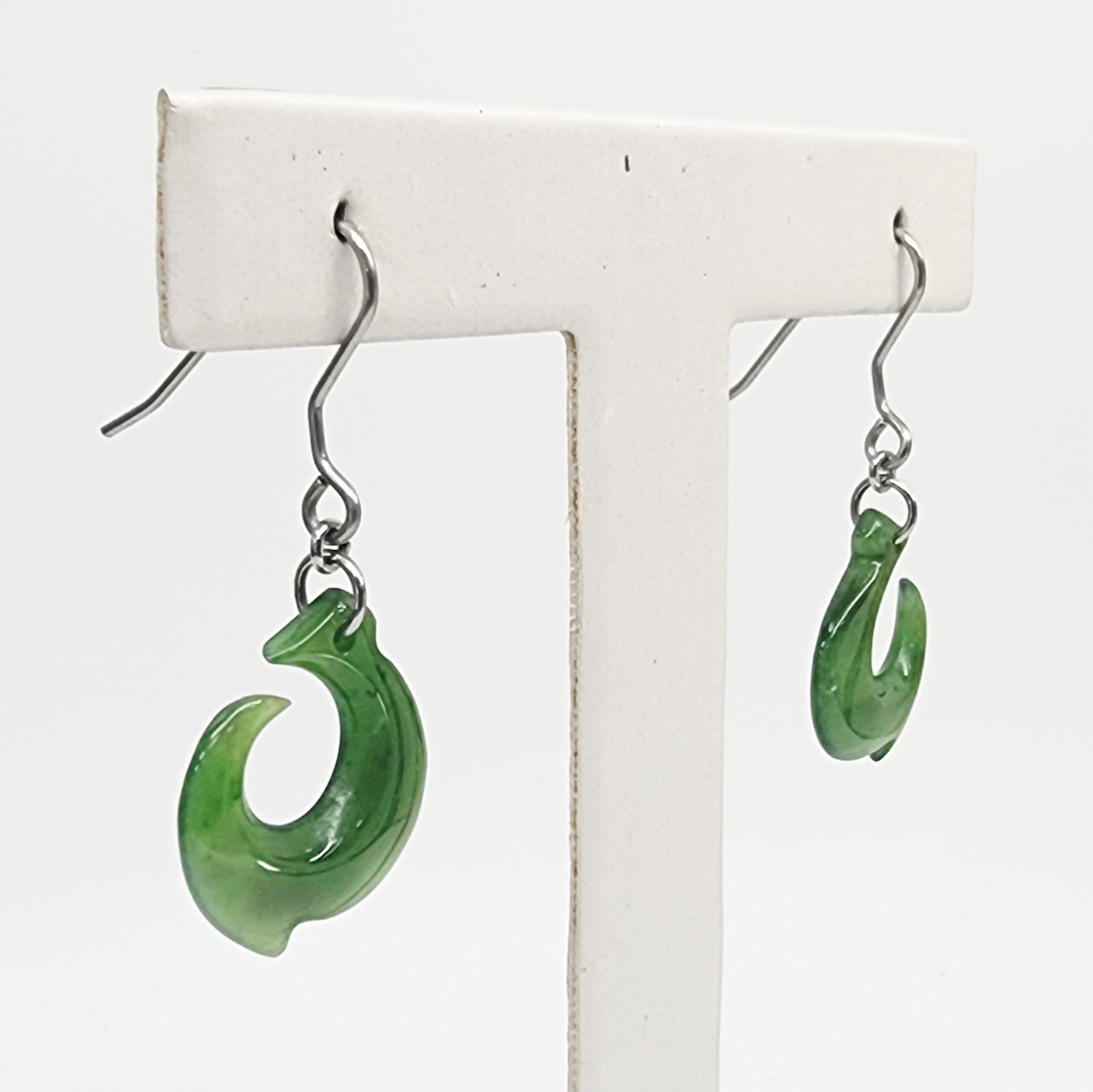 NZ Greenstone Hook Earrings with Surgical Steel Hooks