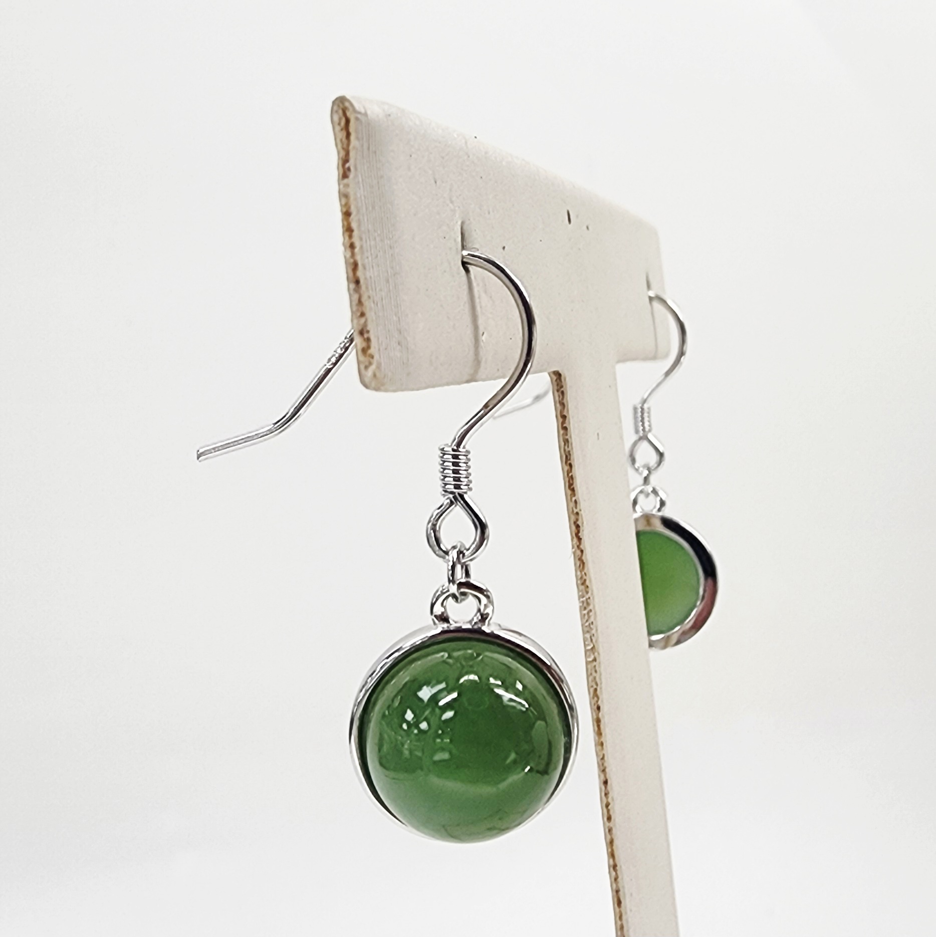 NZ Greenstone Round Half-Ball Hook Earrings – Sterling Silver Setting