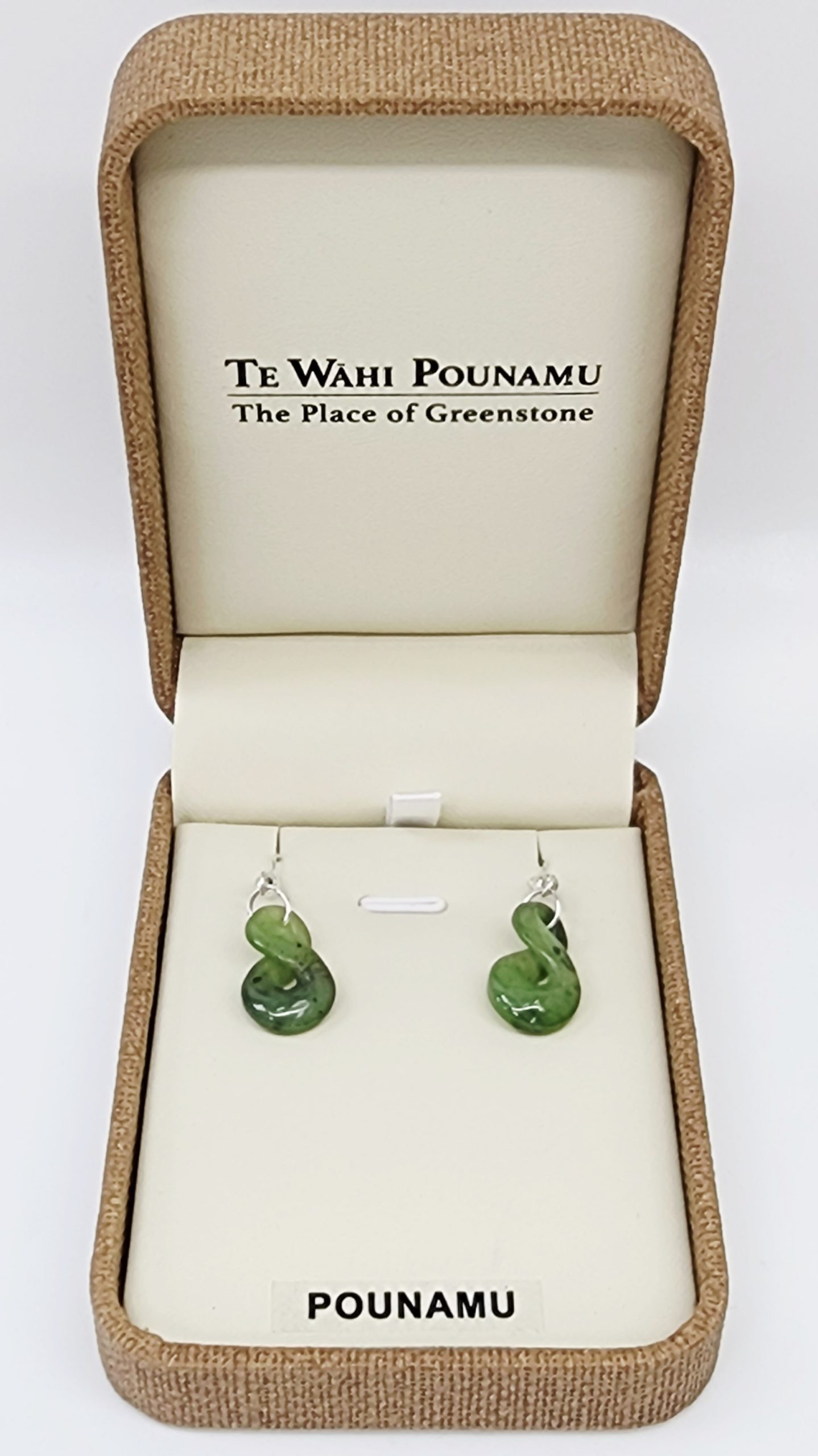 NZ Greenstone Twist Drop Earrings with Sterling Silver Hooks – HE50