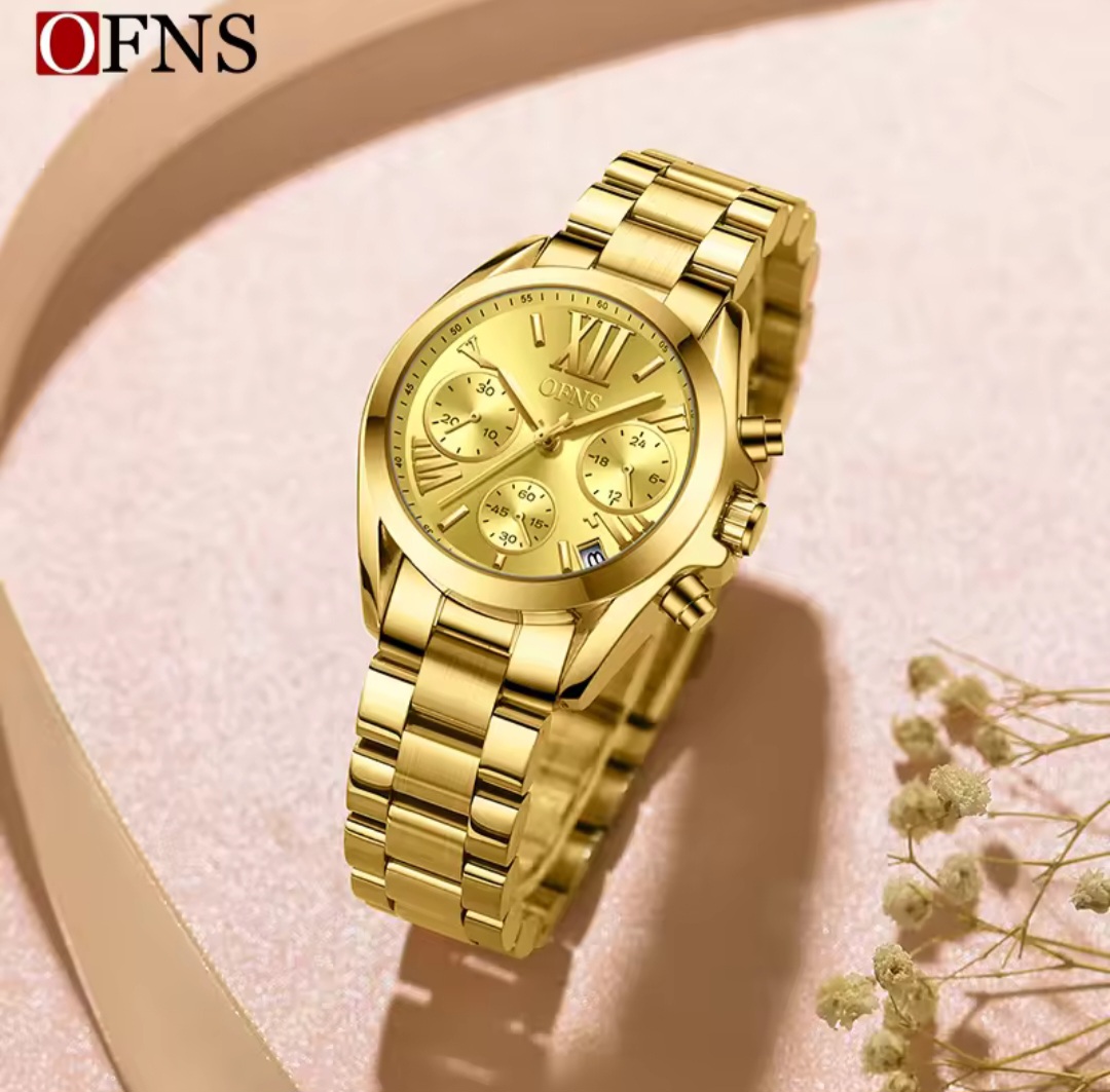 OFNS Ladies Fashion Brand Stainless Steel Gold Tone Gold Dial Quartz Watch – OFNSGOLD
