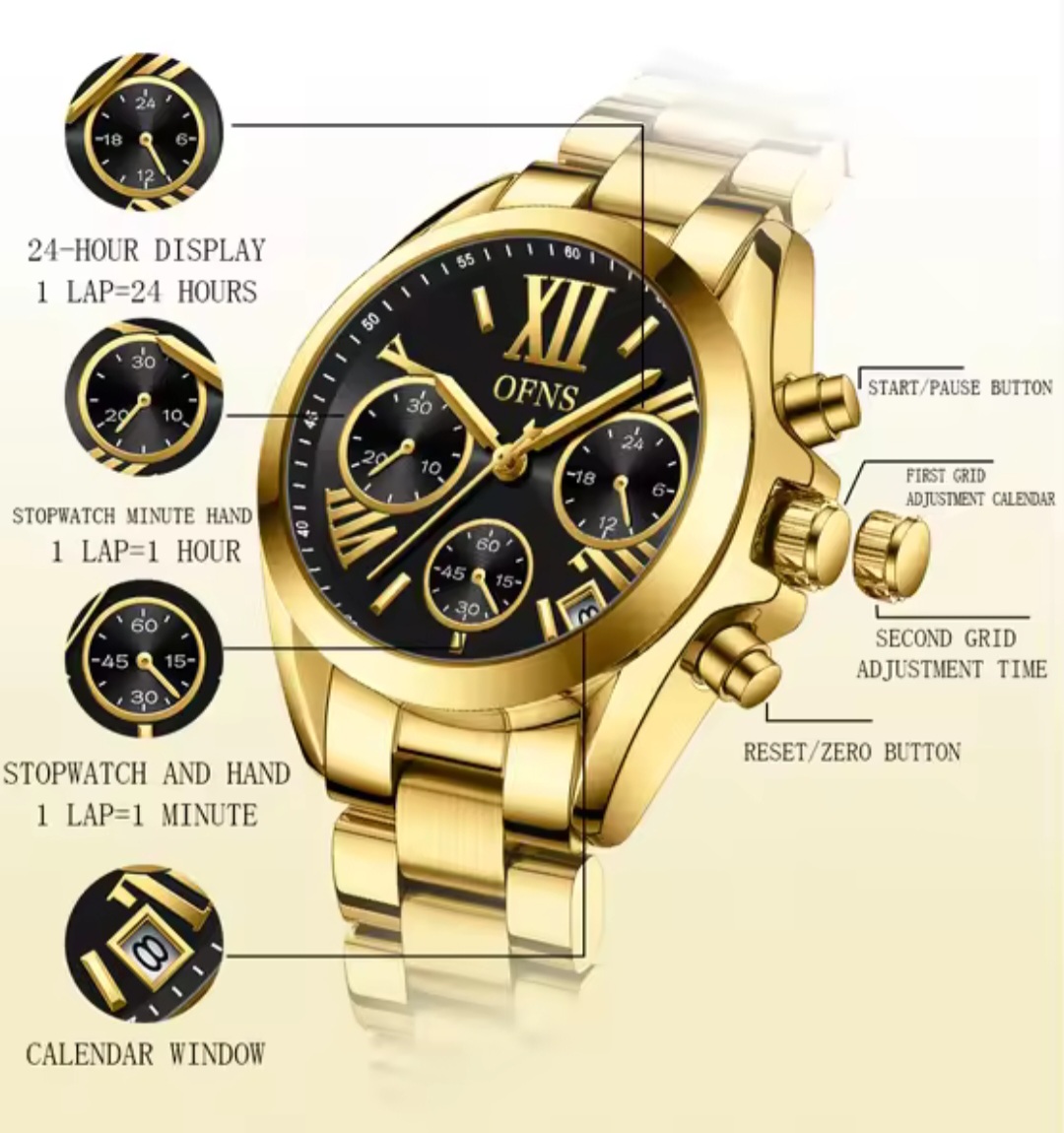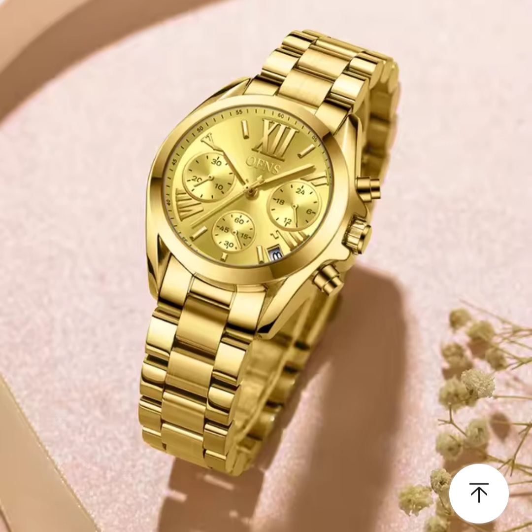 Whether you’re dressing up for a formal event or seeking a touch of elegance for a casual outing, this full dress watch is the perfect accessory. The gold hue and Roman numeral detailing make it a standout piece for those who appreciate a classic aesthetic. The watch’s versatility extends to its usage and purpose, making it suitable for both professional and social settings. With its combination of functionality and style, the OFNS Fashion Brand Stainless Steel Women’s Gold Watch is an essential addition to any fashion-conscious woman’s collection.