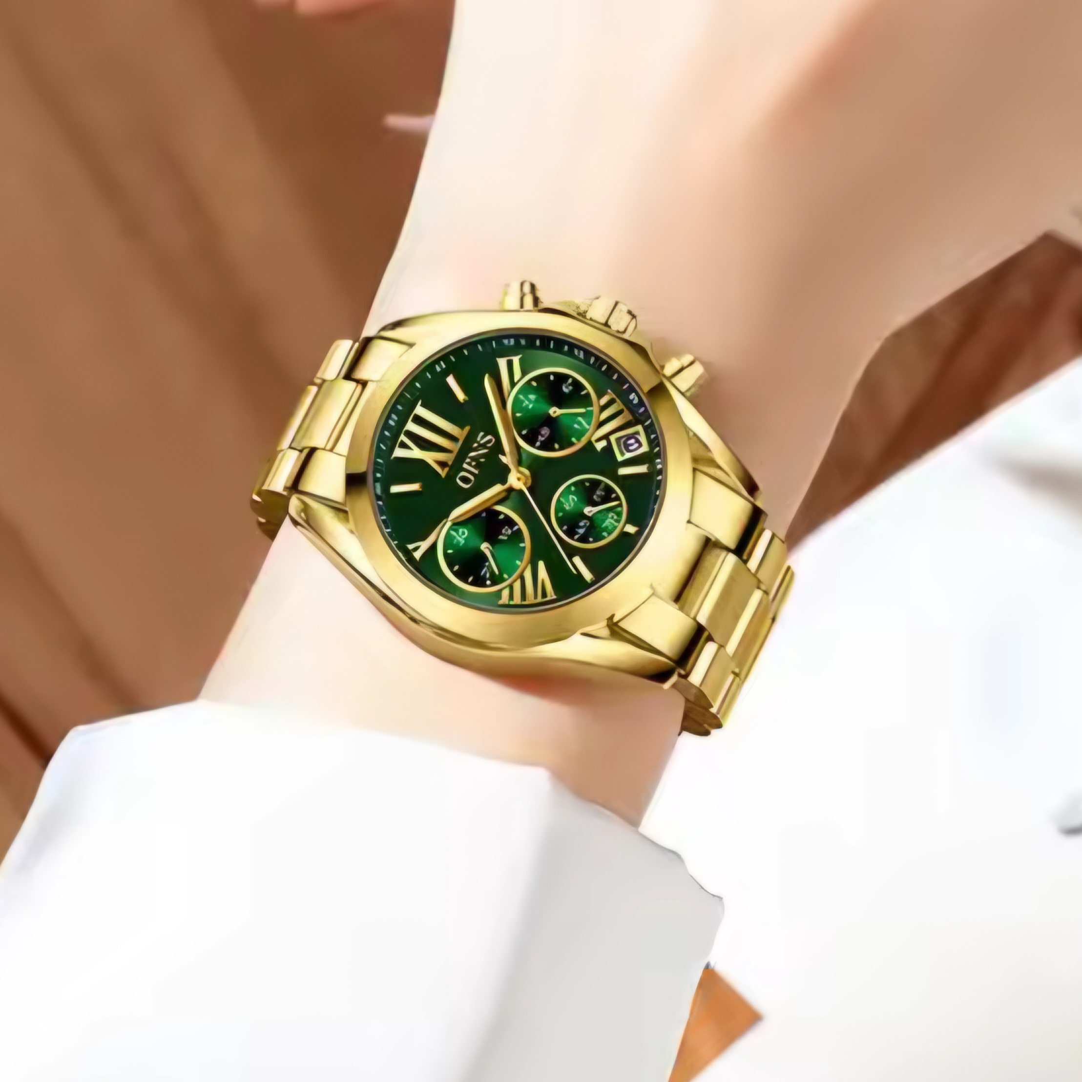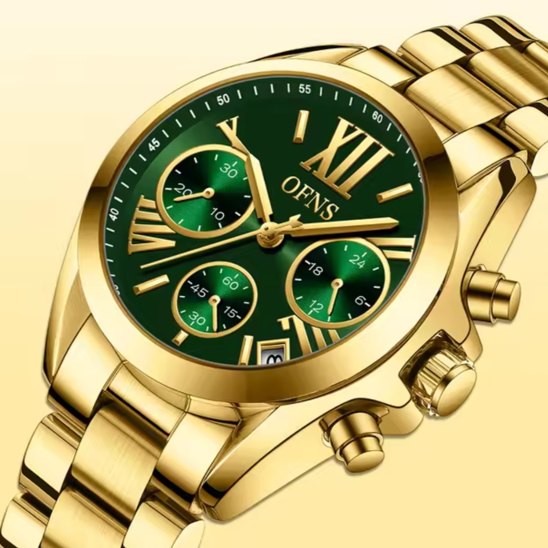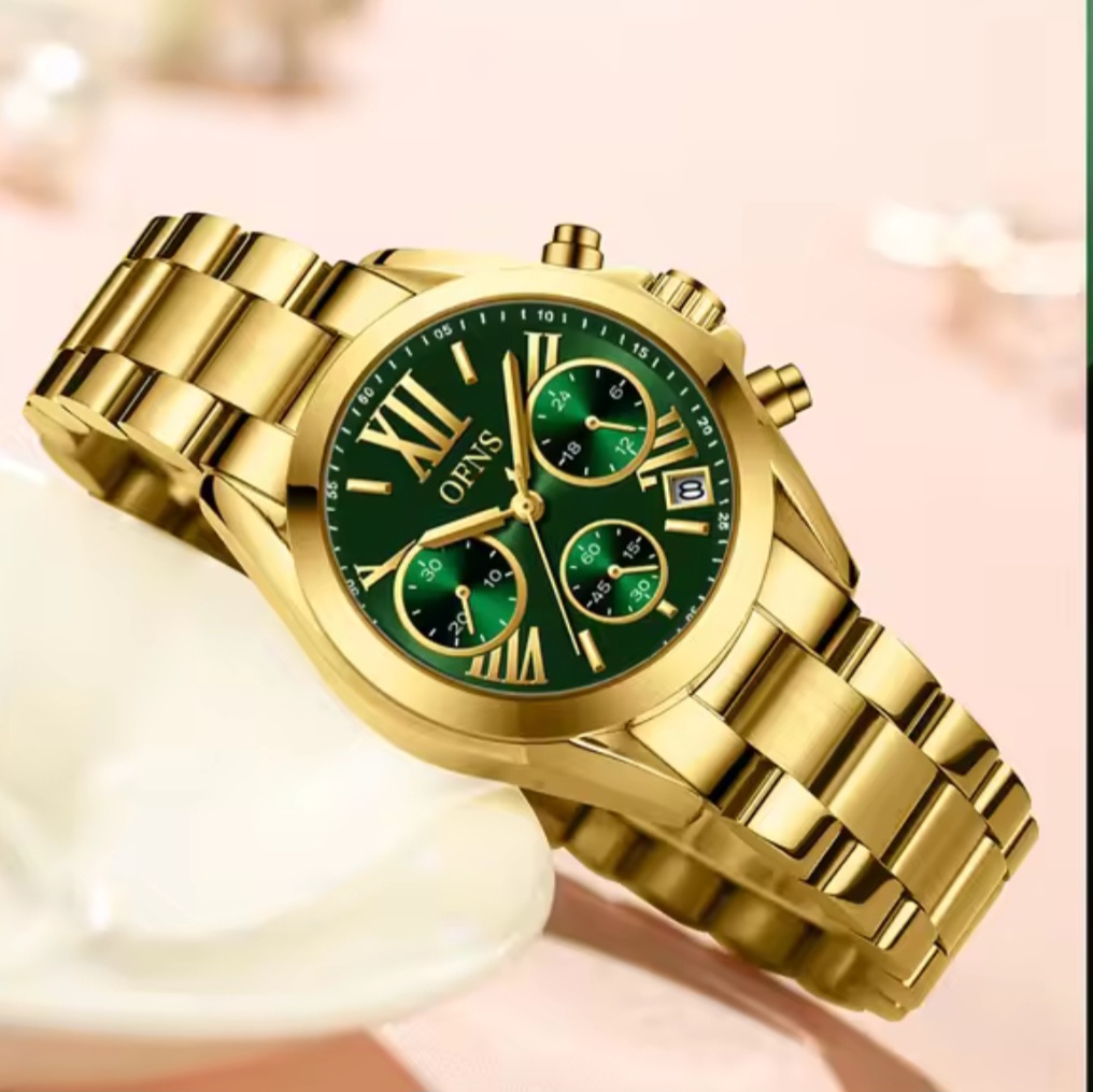 OFNS Ladies Fashion Brand Stainless Steel Gold Tone Green Dial Quartz Watch – OFNSGREEN