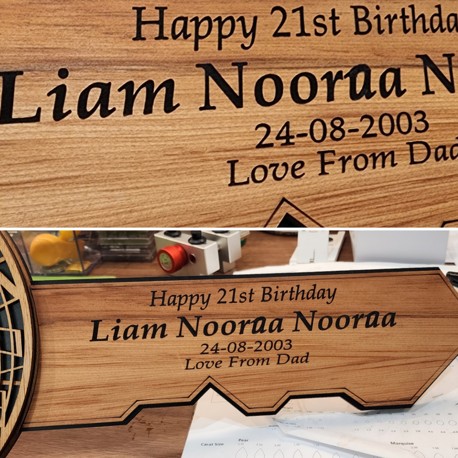 There is a space for laser engraving which we can do if you want to personalise the Key by adding name and something one wish. (picture of engraving example attached)