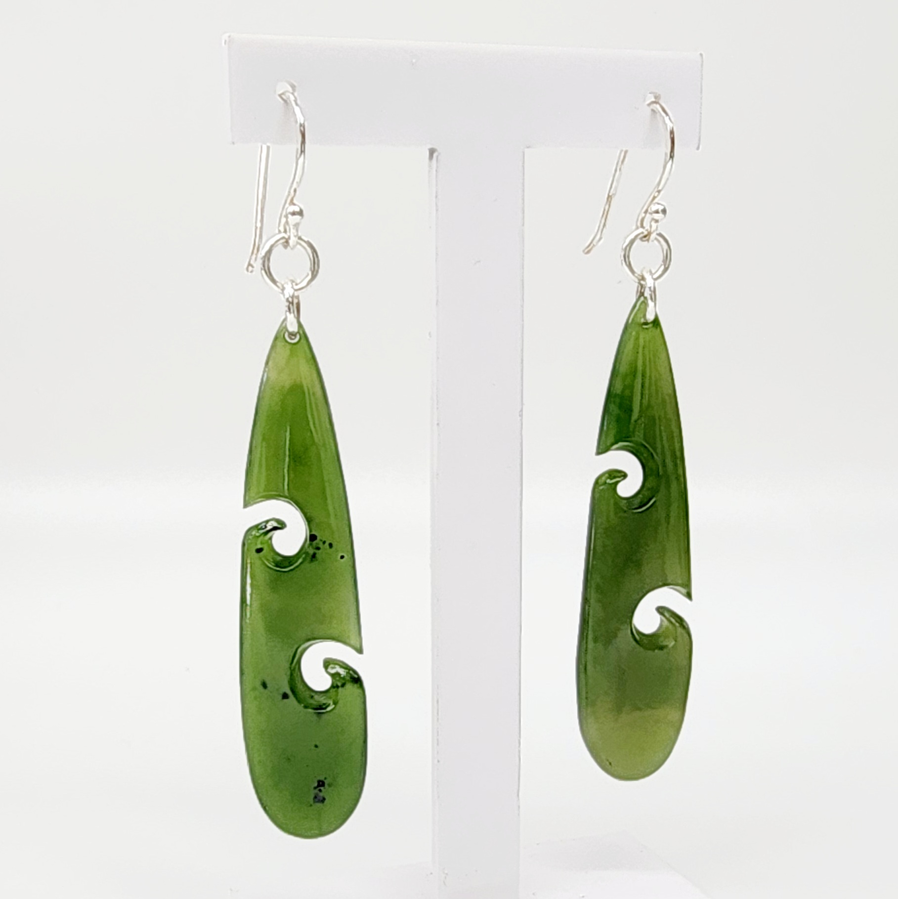 Pounamu Double Koru Drop Earrings with Sterling Silver Setting and Hooks – DPZ/3