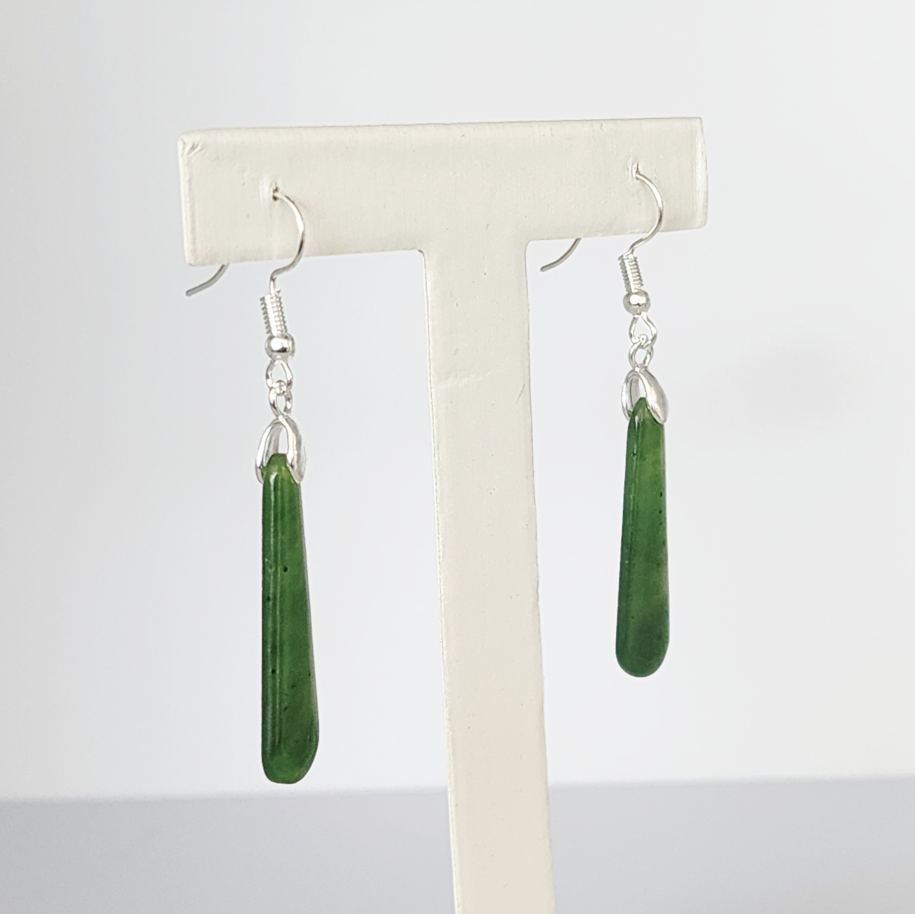 Pounamu Drop Earrings with Sterling Silver Setting and Hooks – ED2.28