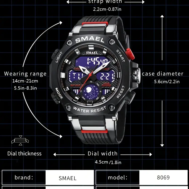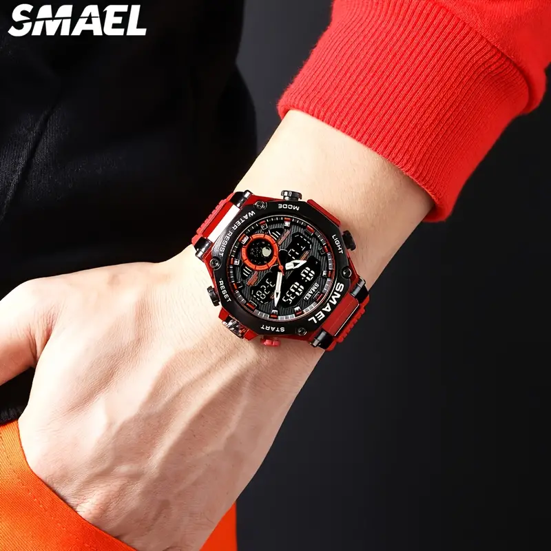 SMAEL Digital/Analog Men’s Watch with Multifunction – Red