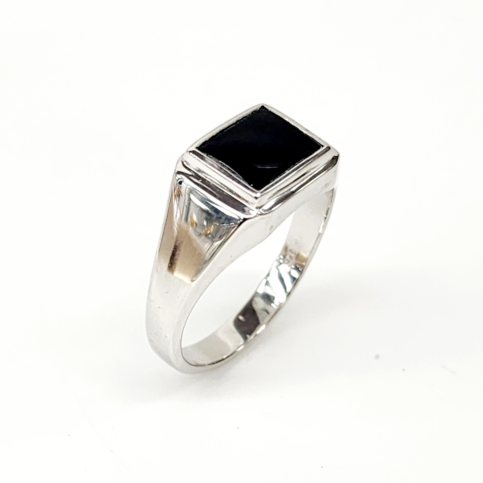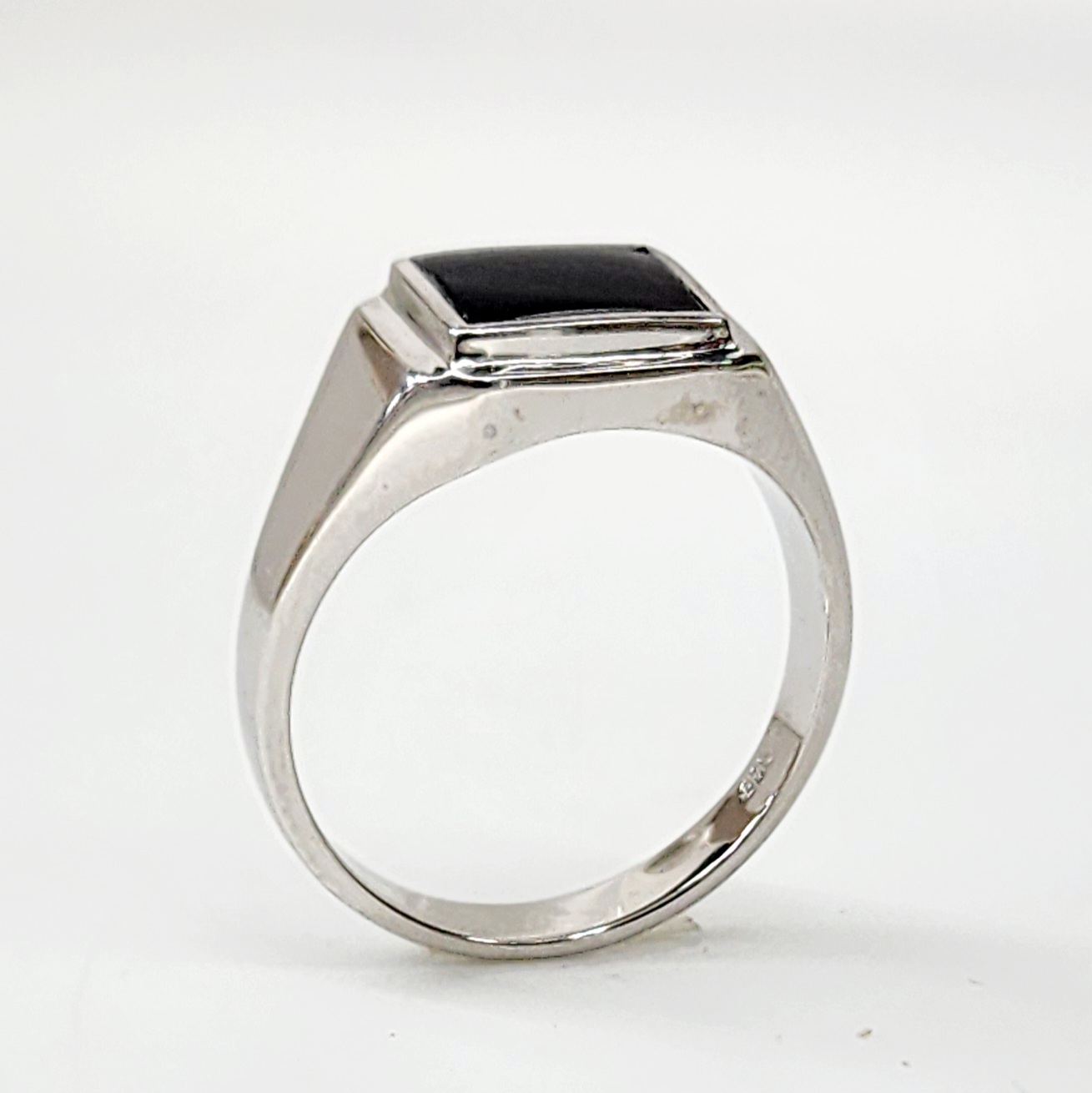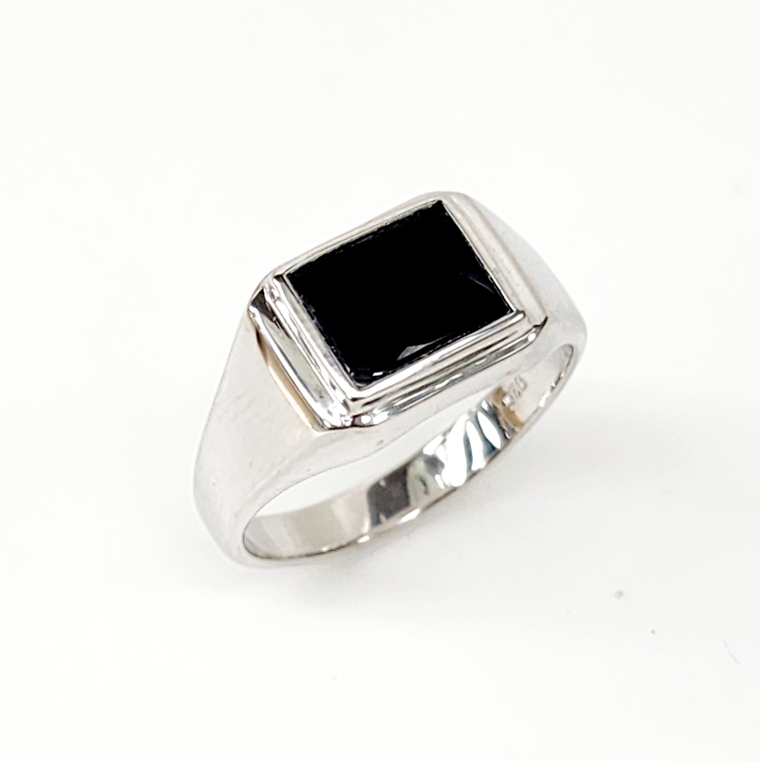 Introducing the Adrian Rectangle Black Onyx Ring, an elegant choice from the Stonex Jewellers Gents collection. This bold ring features a striking 10x8mm rectangle-shaped Black Onyx stone, bezel set for a sleek and modern look. Black Onyx symbolises strength and protection, making it a powerful addition to any wardrobe. Crafted with precision, this piece speaks to timeless masculinity and confidence. Ideal for daily wear or special occasions.
