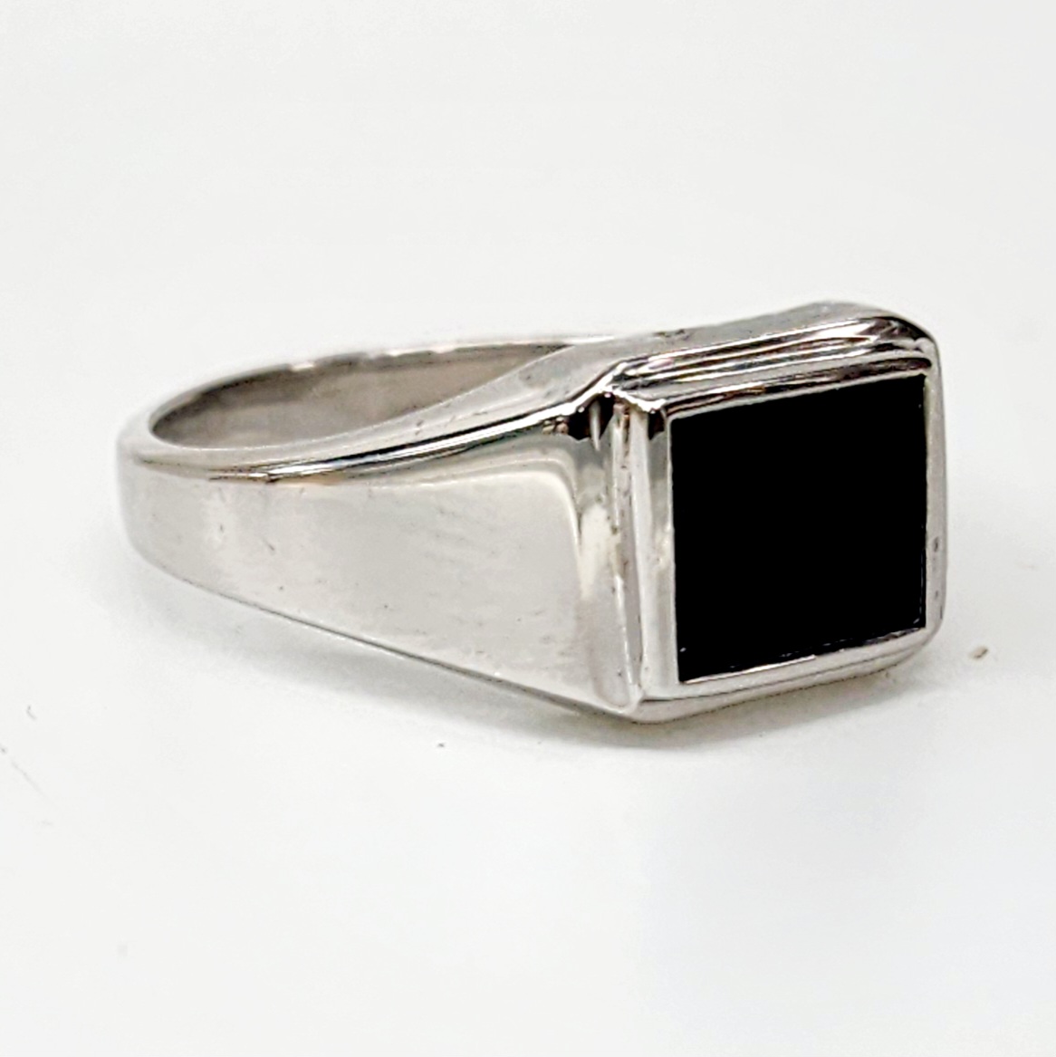 Sterling Silver 10 x 8mm Rectangle Black Onyx Gents Ring