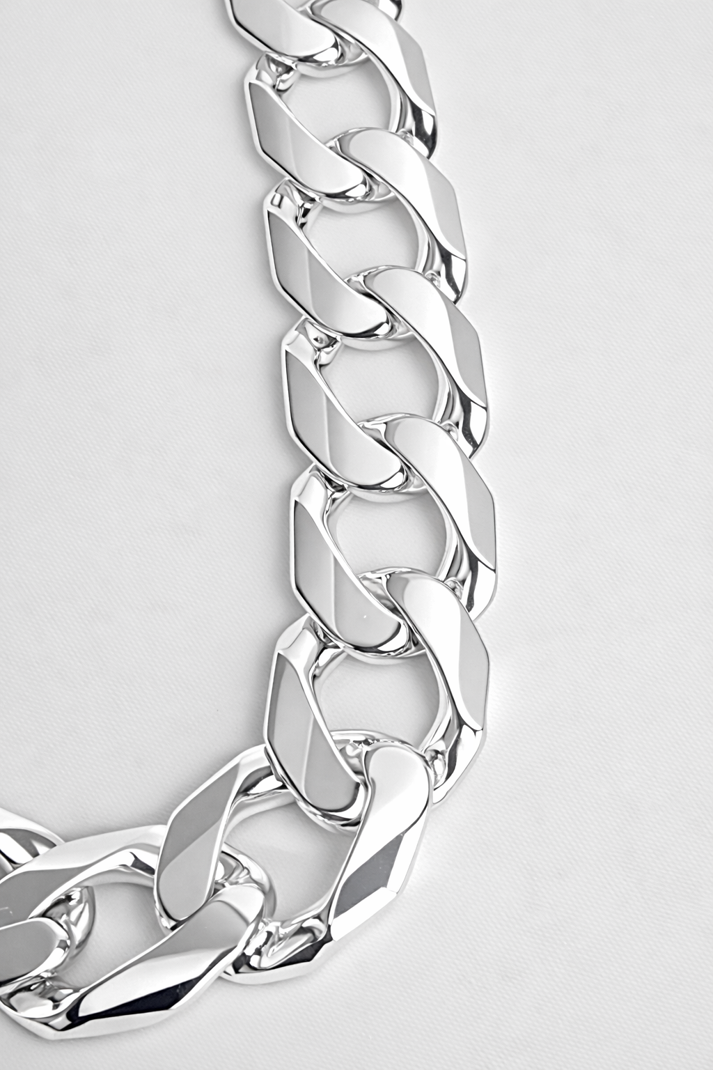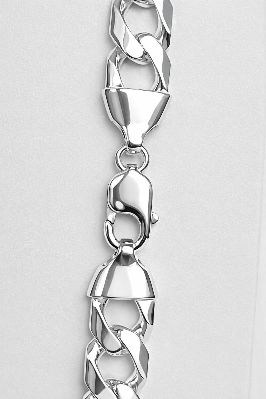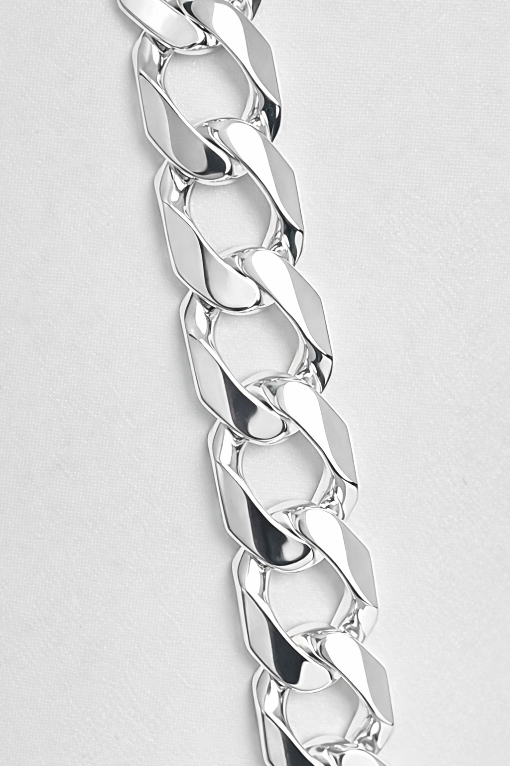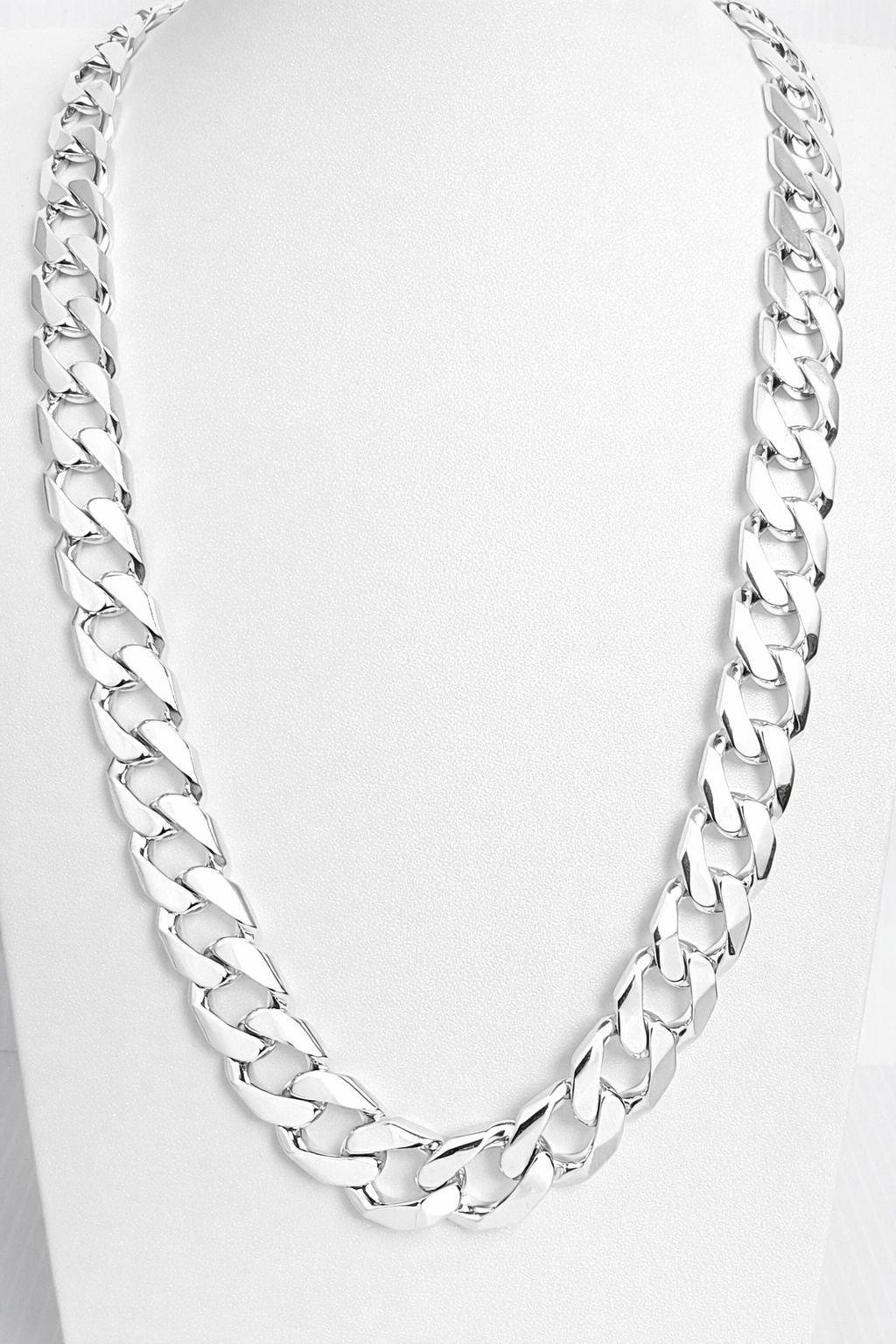 With an impressive 12.50mm width and 3.30mm thickness, it’s designed for customers who want a heavier, standout chain that can be worn on its own or paired with a pendant for extra presence. The mirror-like polish enhances the silver’s natural brilliance, giving the chain a crisp, vibrant finish suitable for both everyday wear and special occasions.