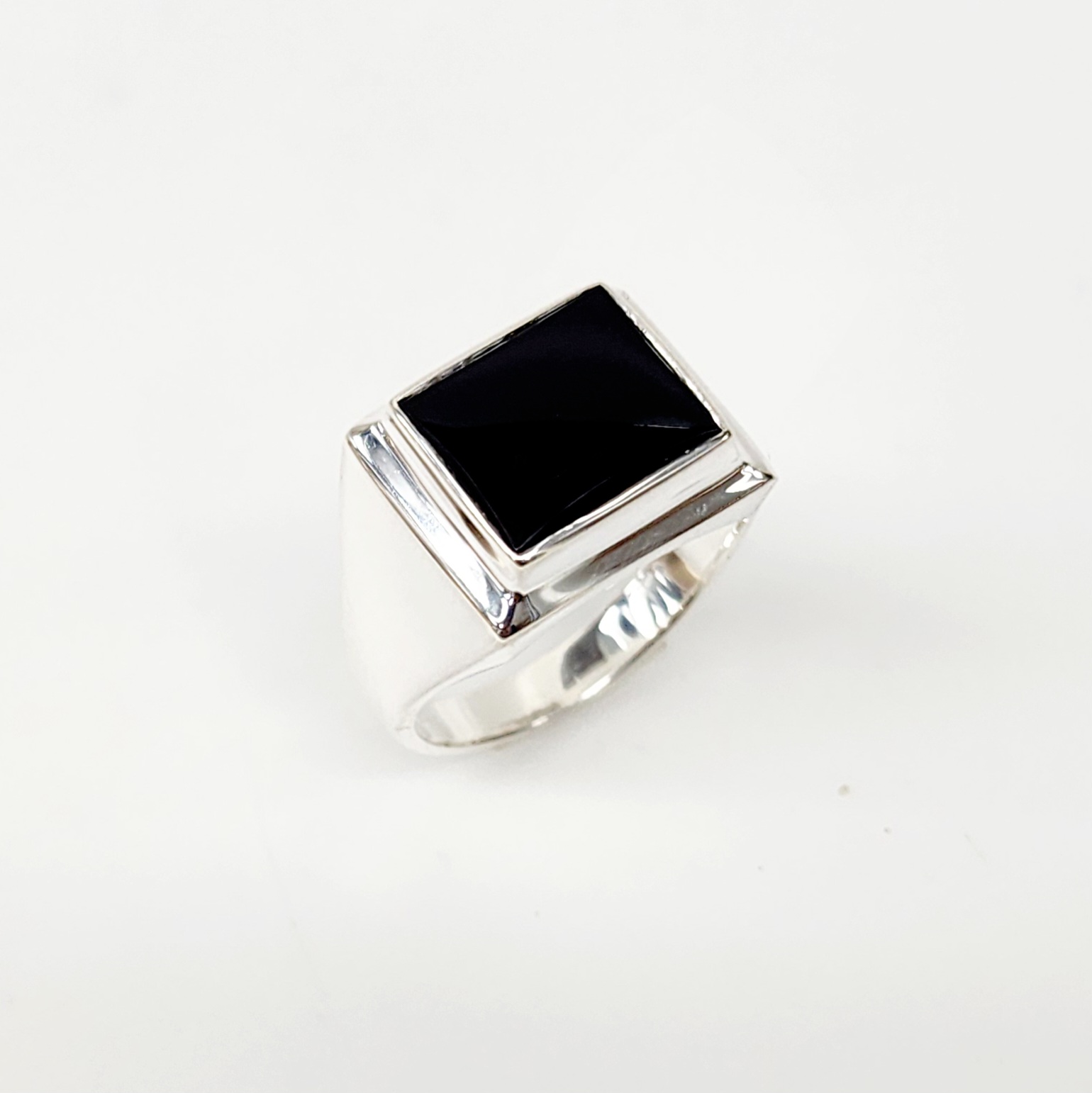 Elevate your style with the Edmond Rectangle Black Onyx Ring from Stonex Jewellers. Featuring a striking 12x10mm rectangle of polished black onyx, this ring is expertly bezel set to ensure the stones depth and colour shine through. Black onyx is known for its protective qualities and ability to promote emotional strength, making it a meaningful addition to any mans jewellery collection. The sleek design and sturdy setting make this ring perfect for everyday wear or special occasions.