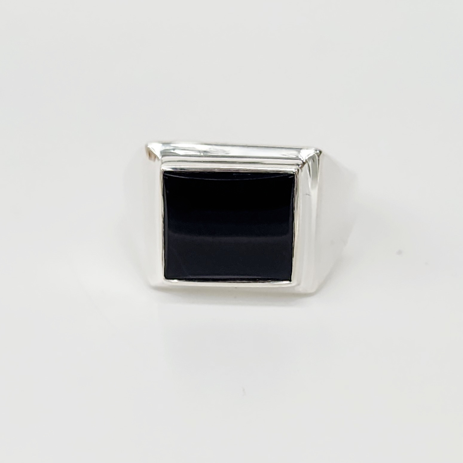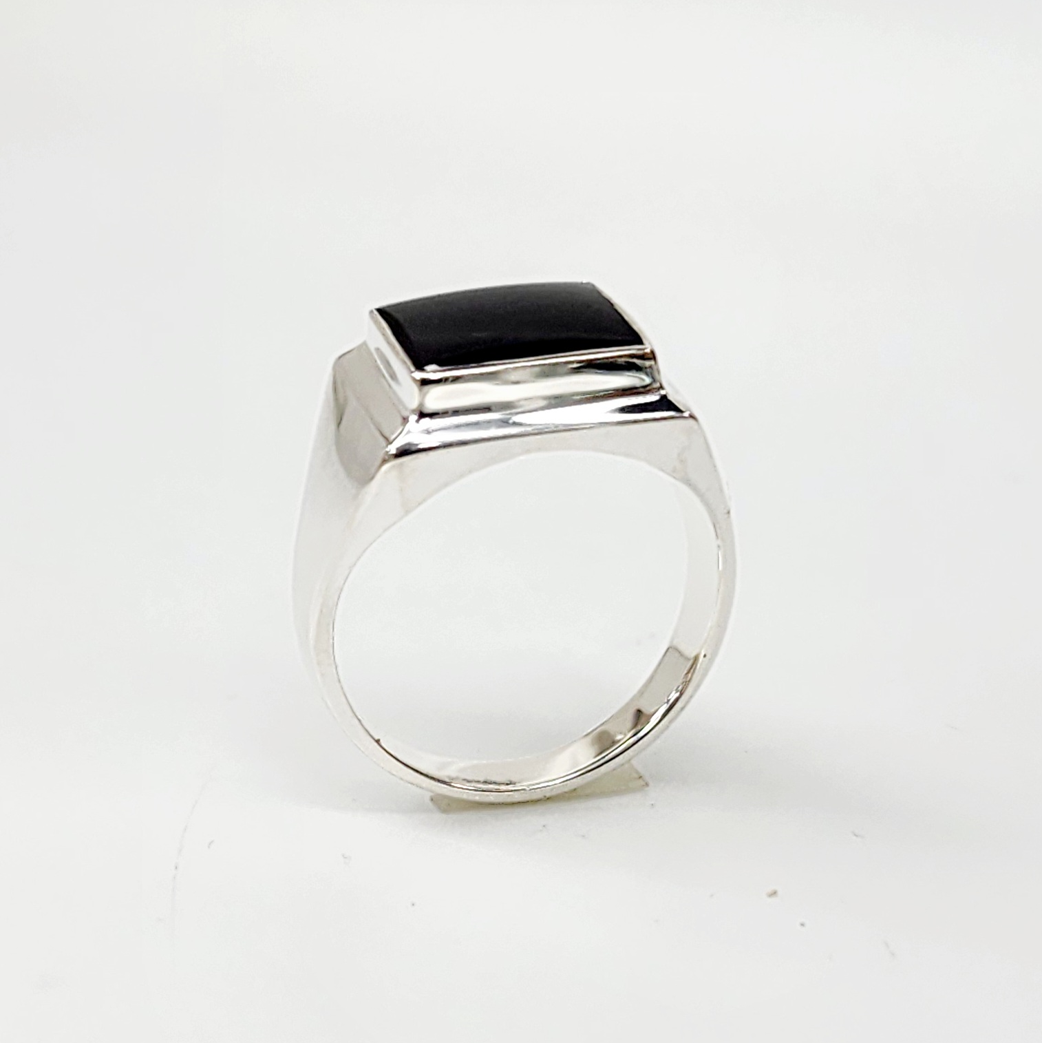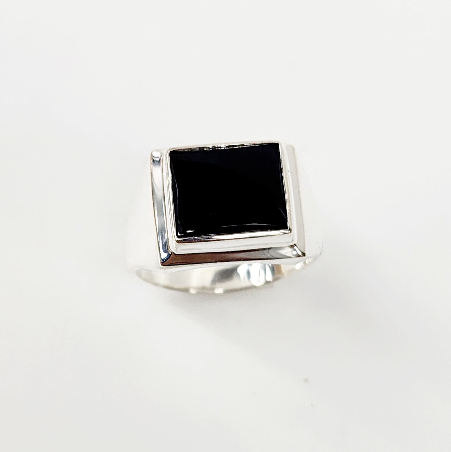 Sterling Silver 12 x 10mm Rectangle Black Onyx Gents Ring