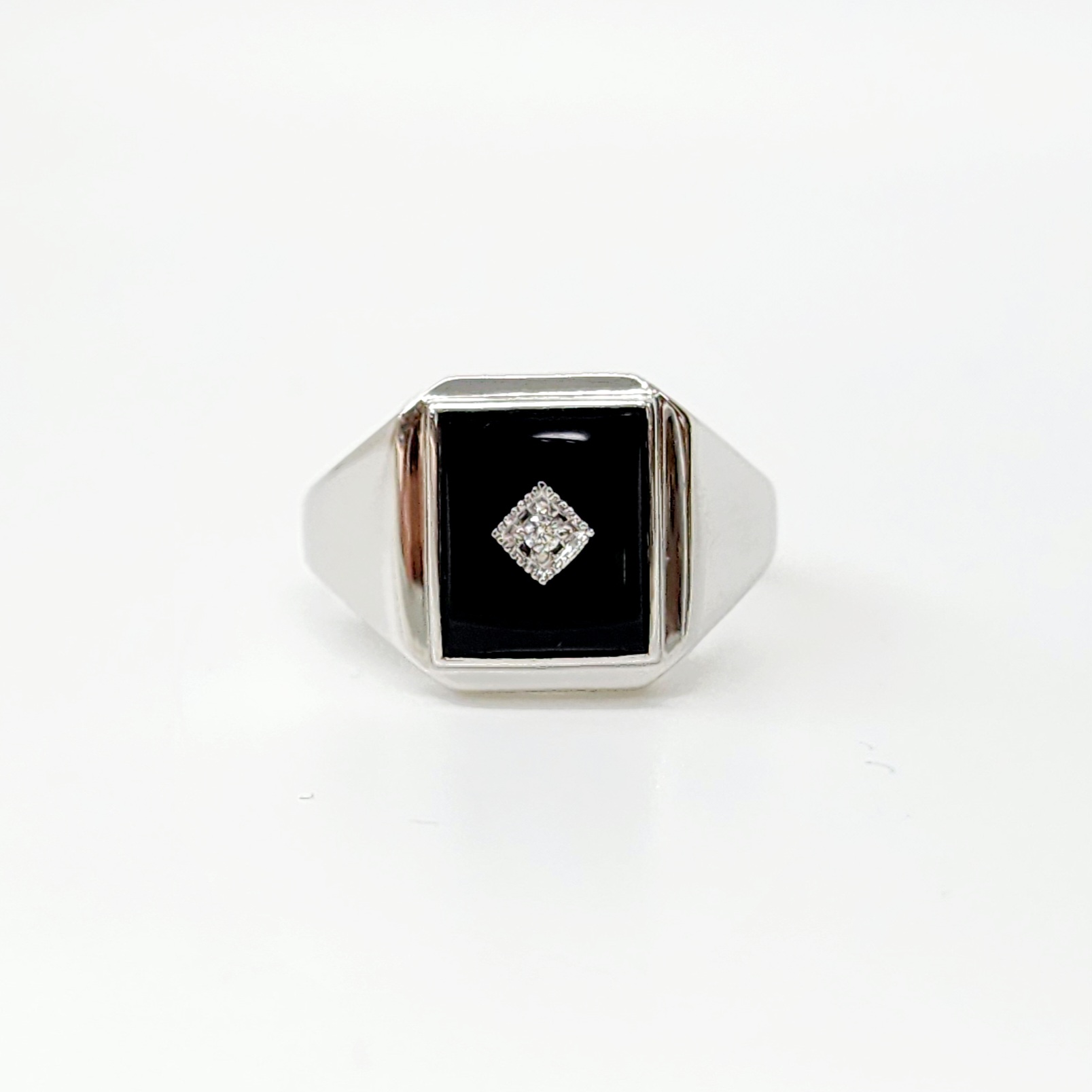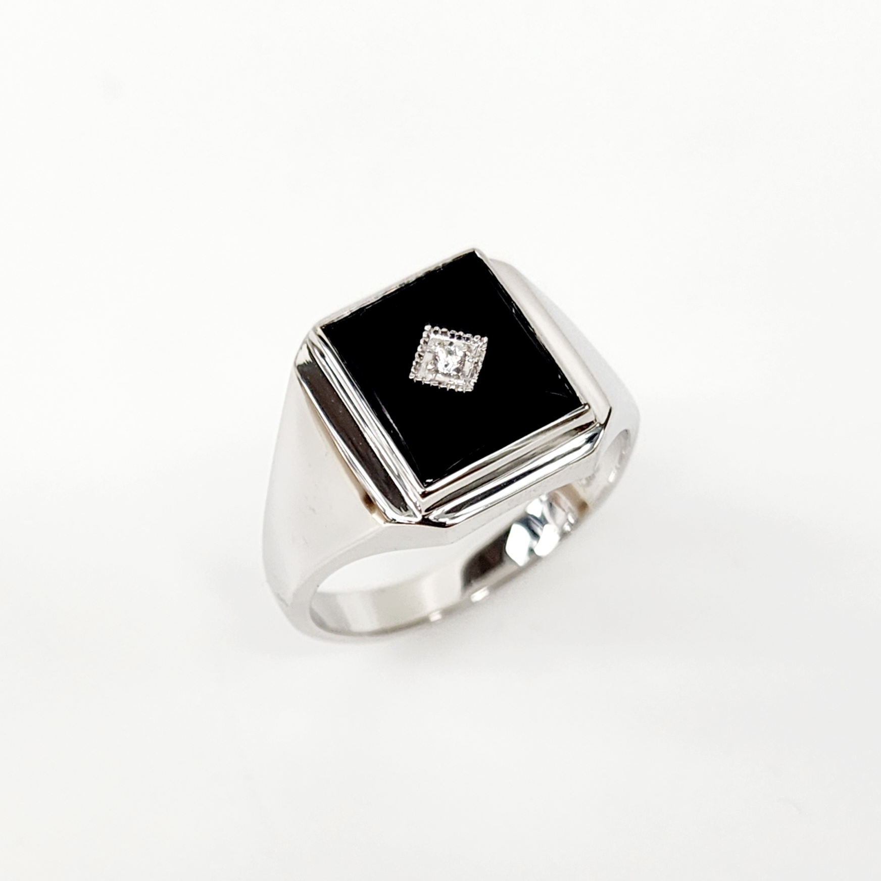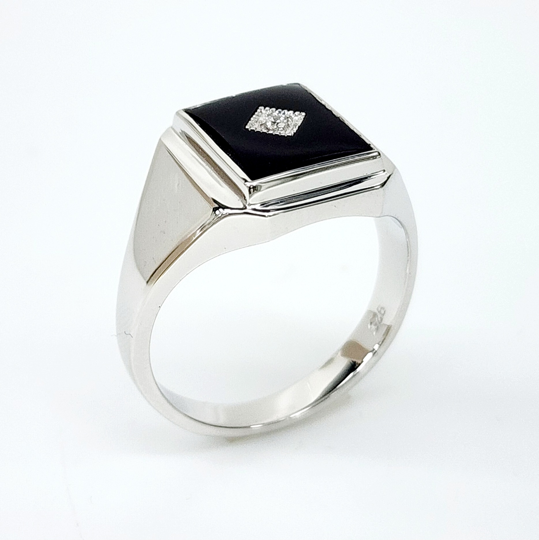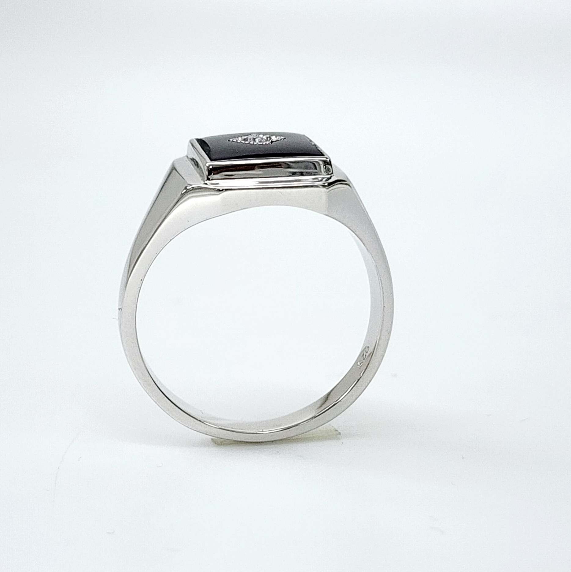 Sterling Silver 12 x 10mm Rectangle Black Onyx Gents Ring Centre Set with Cubic Zirconia