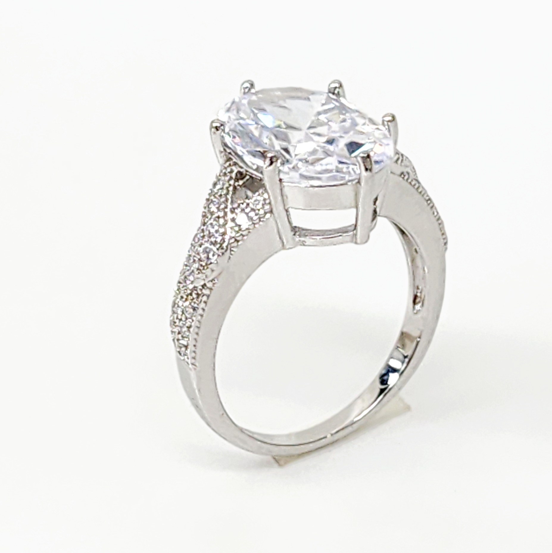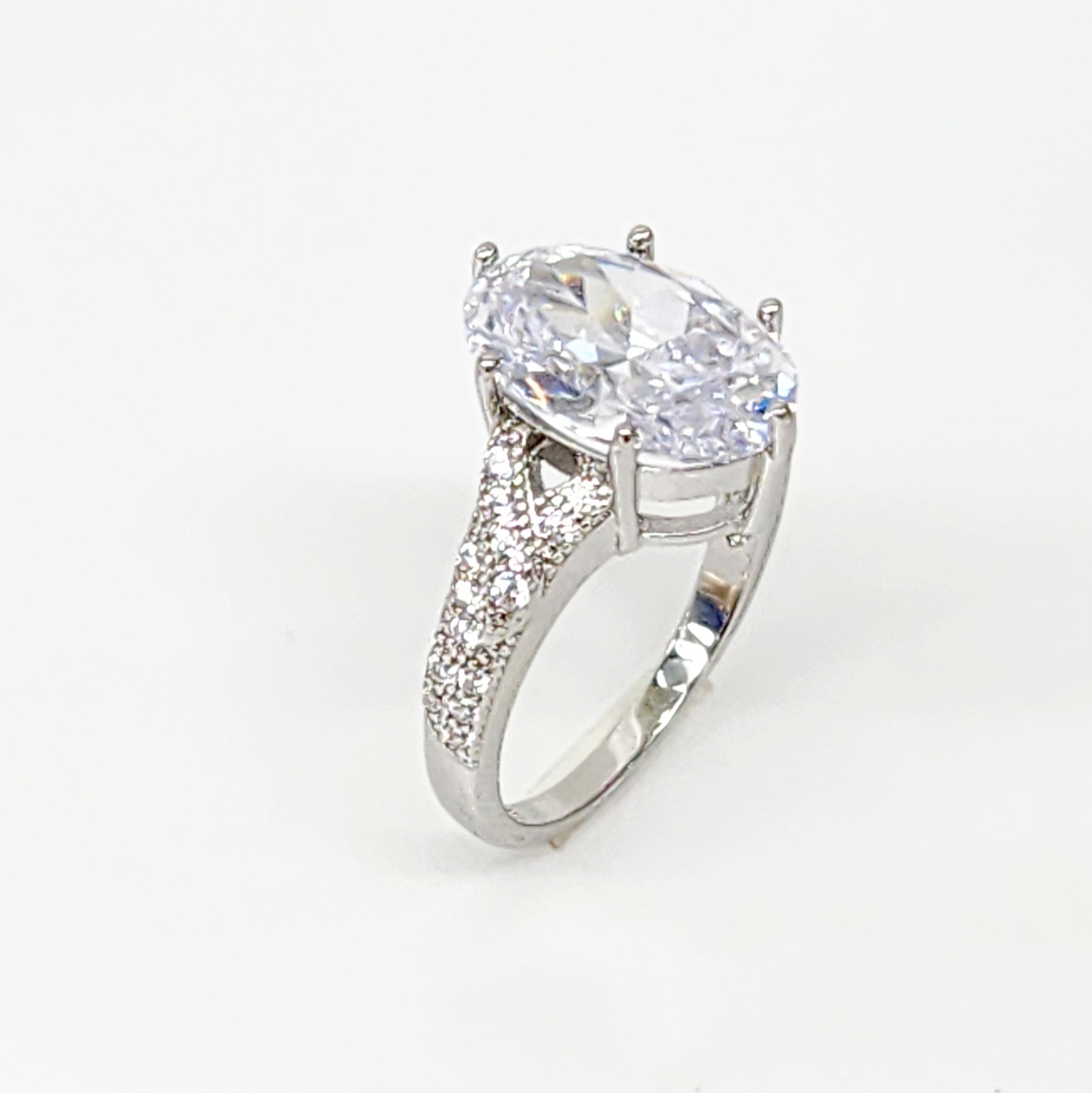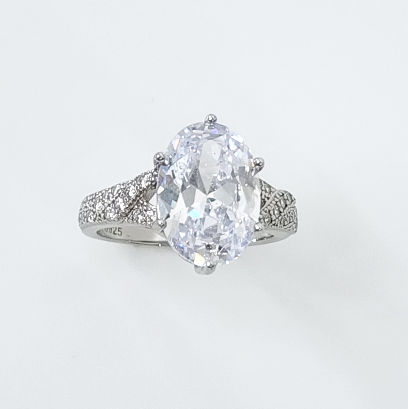 Sterling Silver 14 x 10 Oval Engagement/Dress Ring With Split Shank CZ Setting