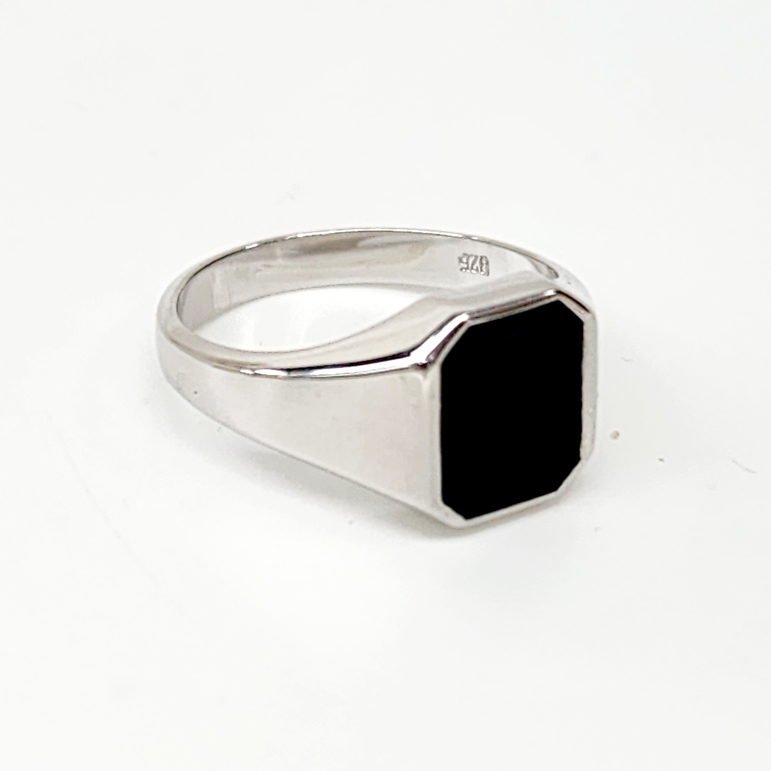 Sterling Silver 14 x 12mm Octagon Black Onyx Signet Ring