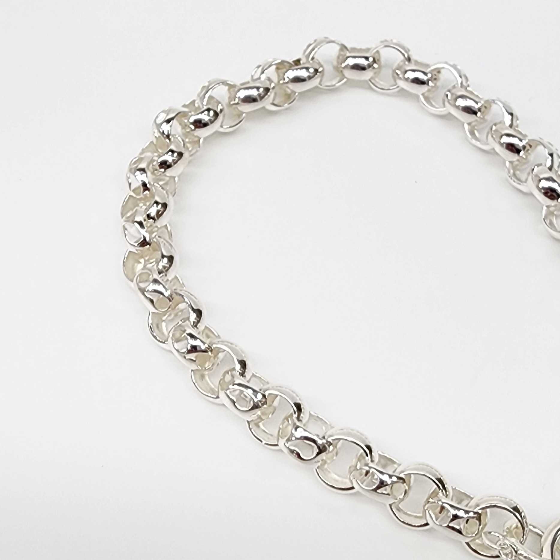 This exquisite sterling silver bracelet is a perfect blend of intricate craftsmanship and timeless design. It features a harmonious combination of filigree and solid belcher links, creating a striking visual contrast. The belcher links, measuring 7.00mm round and 3.50mm wide, showcase delicate detailing that adds an elegant touch. The centerpiece of this stunning piece is a 16mm wide puff heart padlock, embodying both charm and sophistication. A sturdy safety chain ensures secure wear, making it an ideal accessory for everyday elegance or special occasions. This bracelet is a true celebration of fine artistry and classic style.