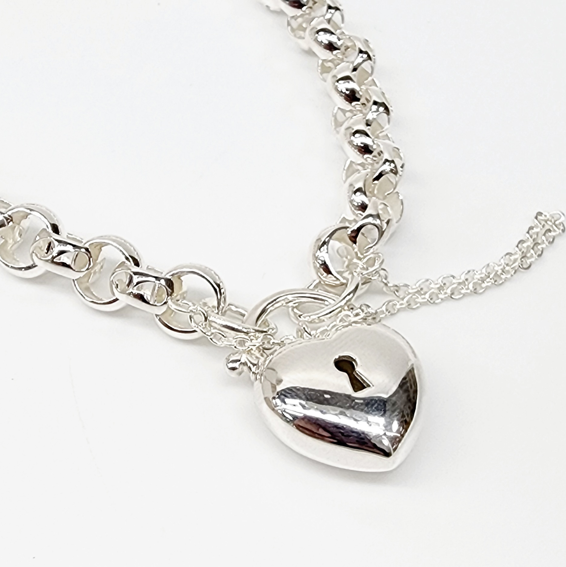 Sterling Silver 19cm Filigree Belcher Bracelet With Puff Heart Padlock