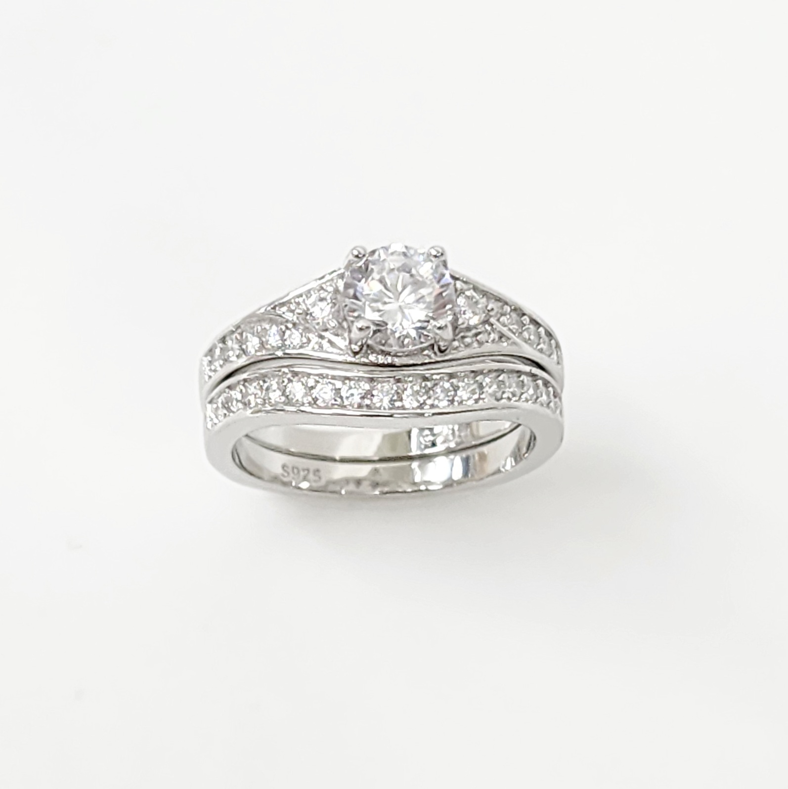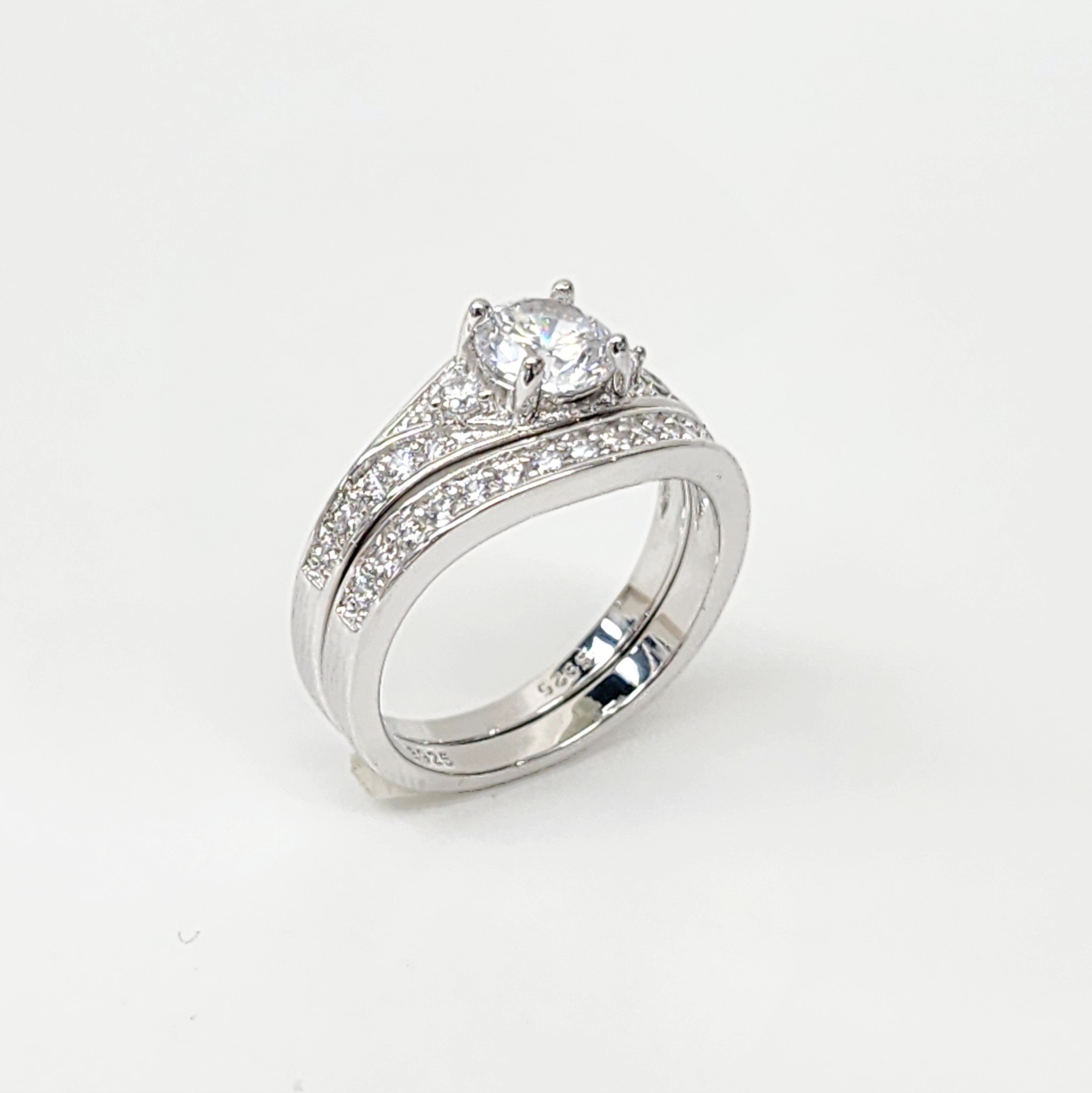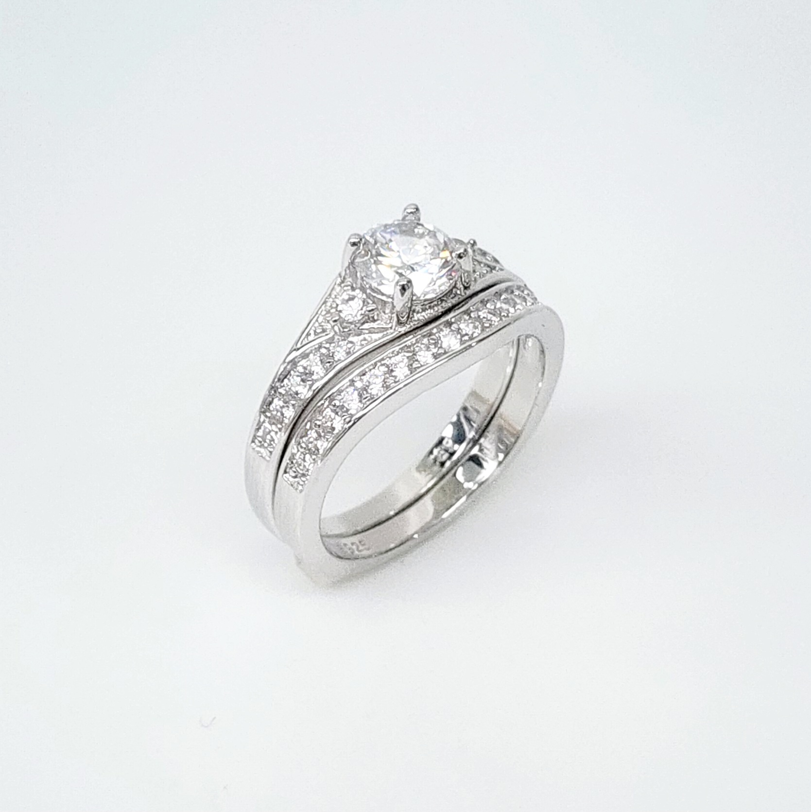 Sterling Silver 2 Piece Wedding Set with Cubic Zirconia Setting