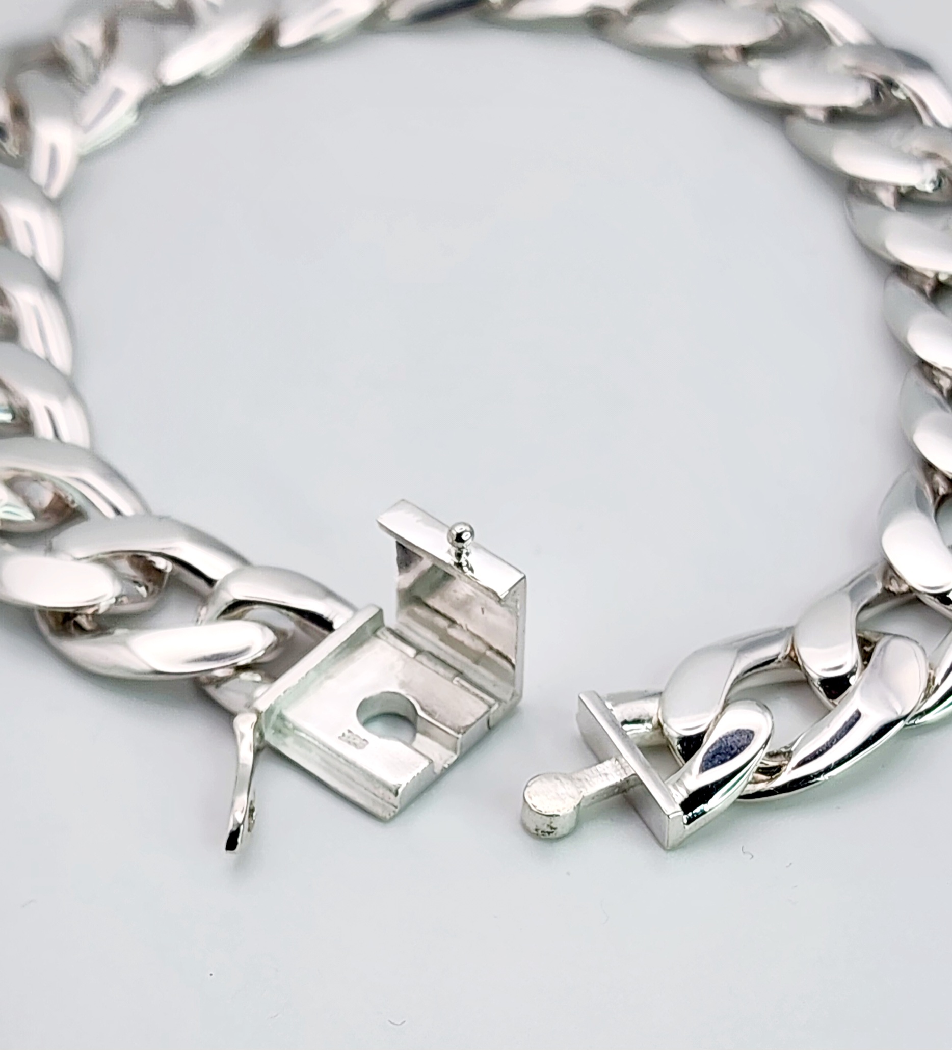 Sterling Silver 22cm Flat Curb Link Bracelet With Double Safety Catch