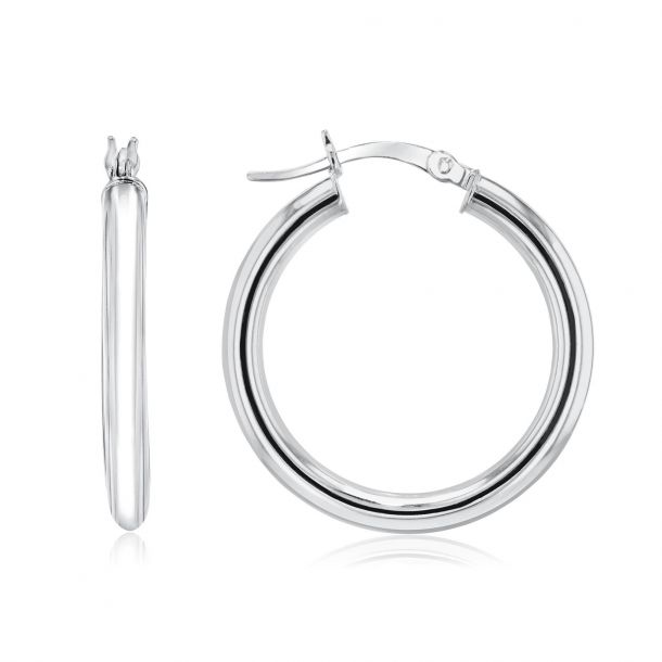 Sterling Silver 25mm x 3mm Polished Round Plain Hoop Earrings