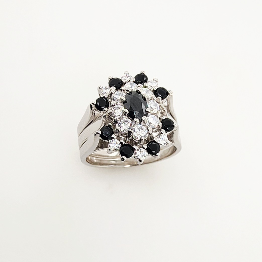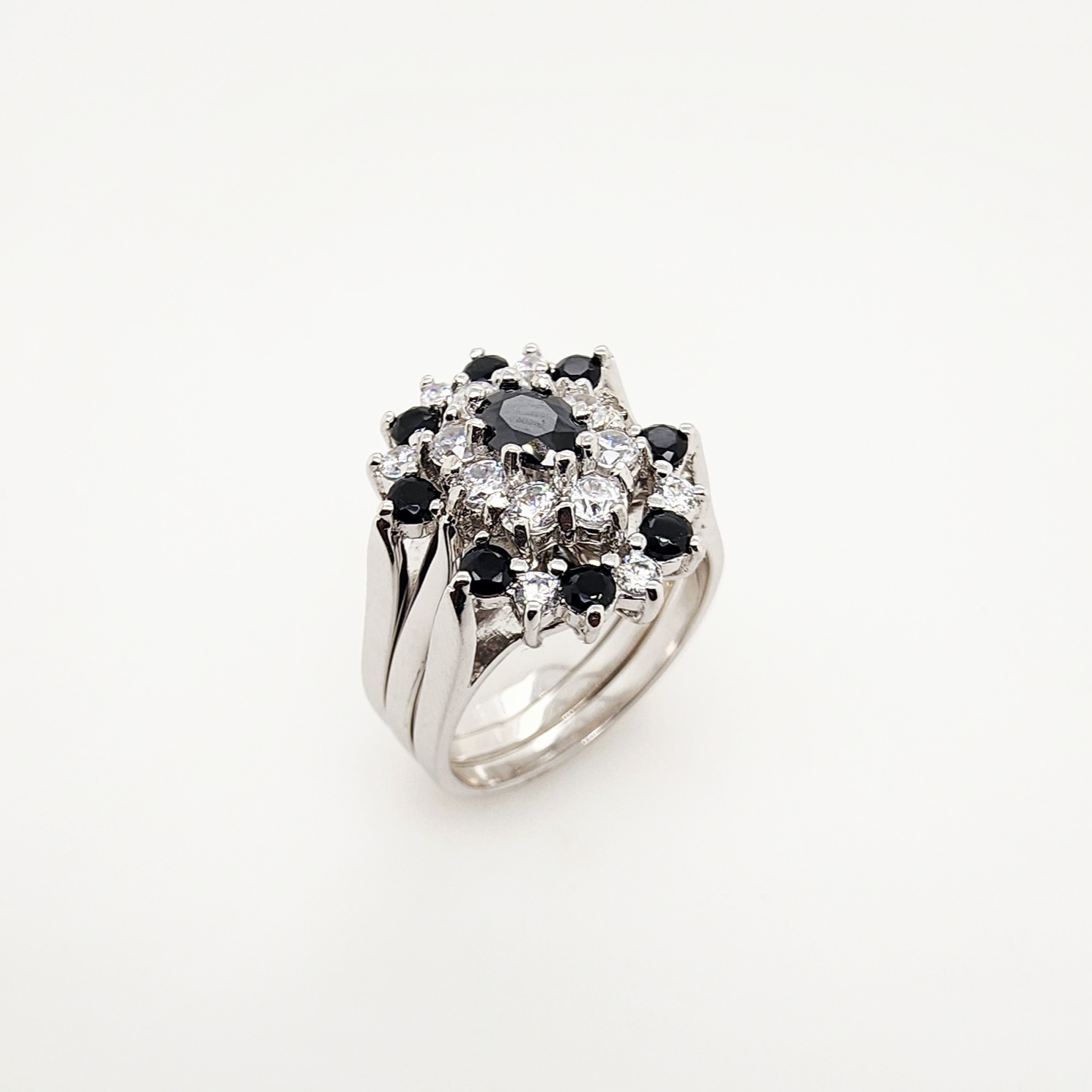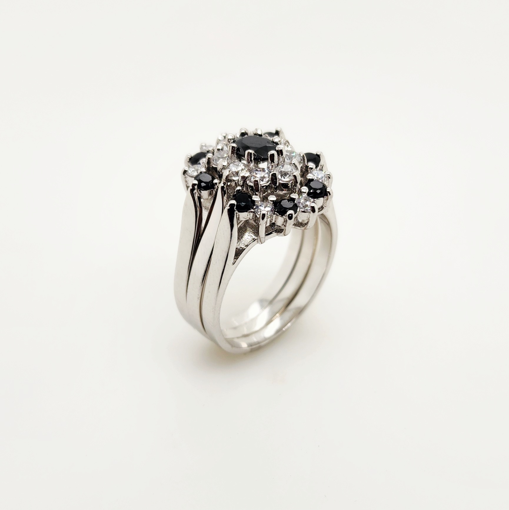 Sterling Silver 3 Piece Cluster Ring Set with Cubic Zirconia & Created Black Sapphire Setting – R005CZBLK